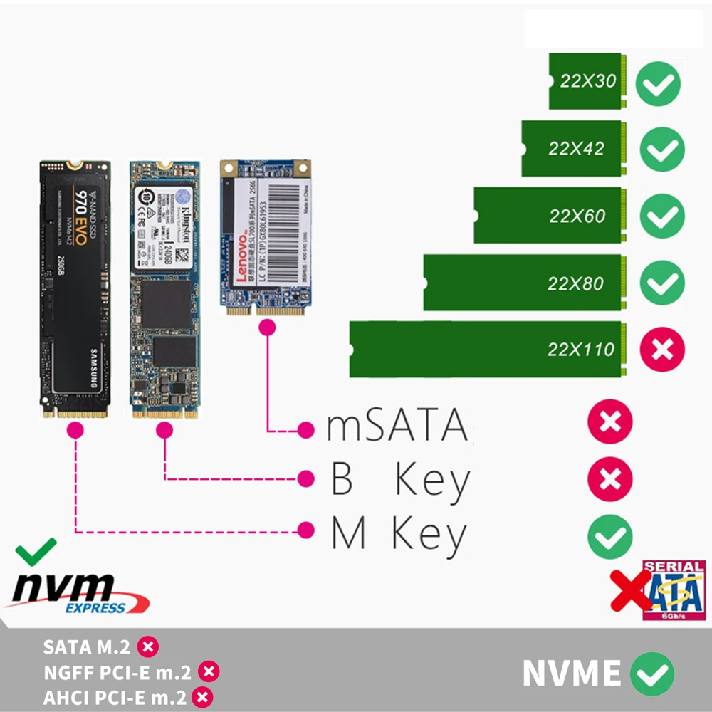 Примечание:Поддерживает большинство NVME M2. SSD, не поддерживает старый стандарт SATA M2. SSD, не поддерживает стандарт PCI SATA M2. SSD.