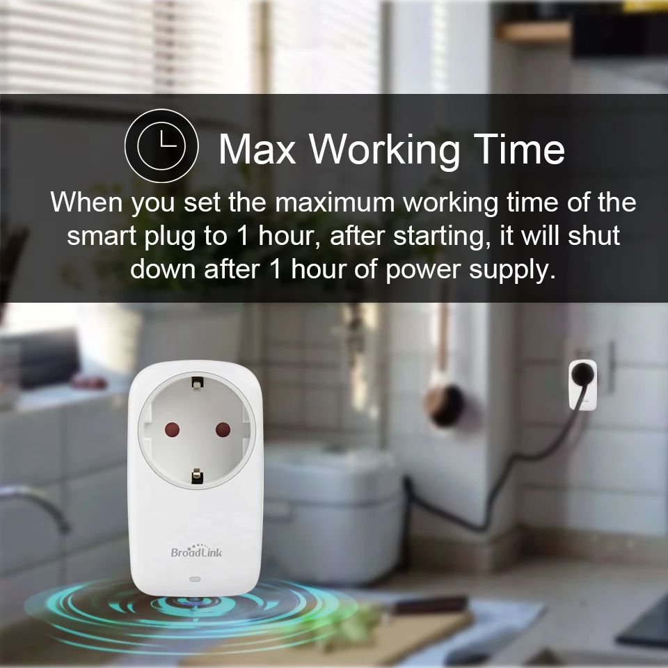 Эта функция должна использовать приложение «BroadLink», максимальная настройка рабочего времени может быть точной до секунд. Например, вы устанавливаете максимальное время работы в течение 2 часов. Смарт-разъем автоматически выключается в течение 2 часов, когда вы используете голос, приложение или вручную включите его.