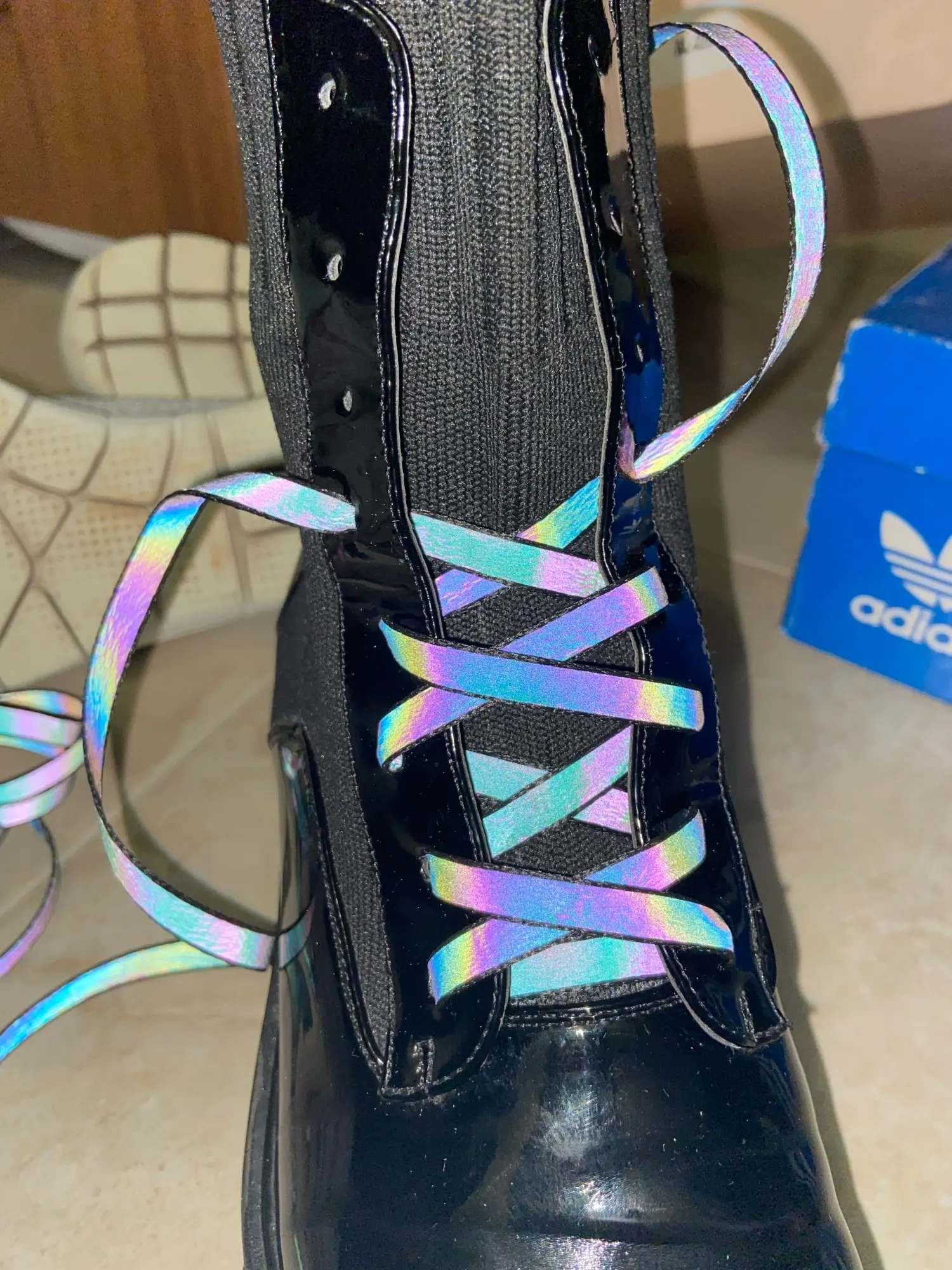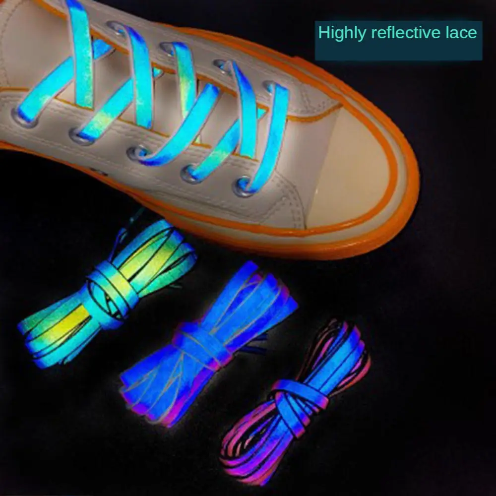 Новые голографические светоотражающие шнурки, двусторонние Светоотражающие плоские шнурки с высокой яркостью теннисные туфли с кружевами