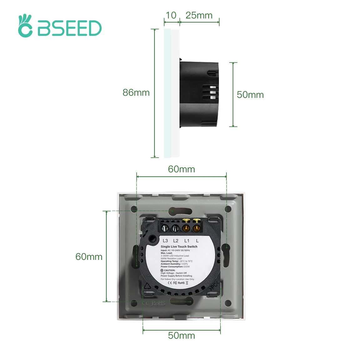 BSEED сенсорный Экран светильник переключатели светодиодный Подсветка светильник Настенные переключатели Стекло Панель Макс. Нагрузка 300 Вт 1Gang светодиодный светильник выключатель; Цвет: белый, черный, золотистый
