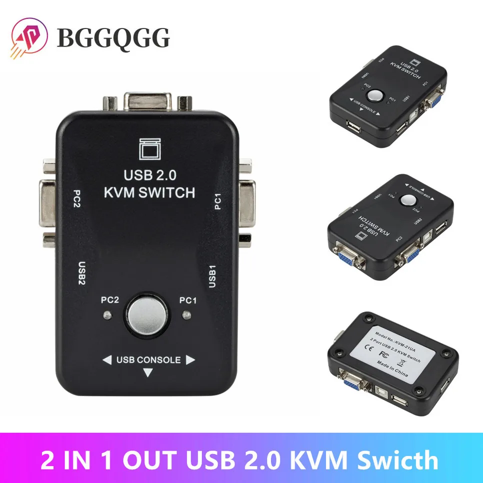BGGQGG USB 2,0 KVM переключатель с 2 портами VGA переключатель SVGA Box USB 2.0 мышь клавиатура 2 в 1 выход kvm переключатель