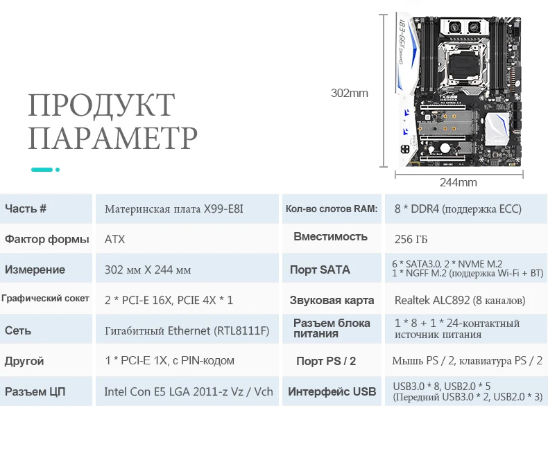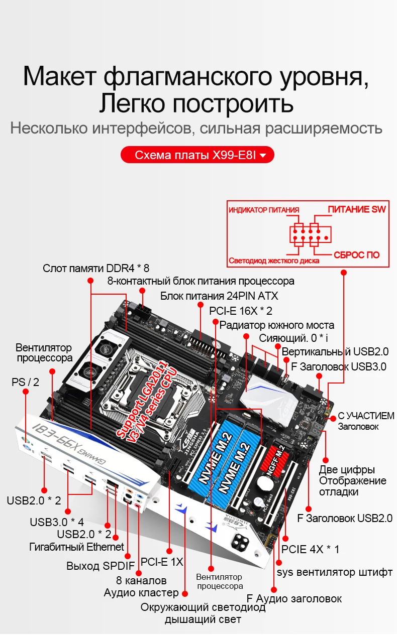 Материнская плата JINGSHA X99 E8I, Поддержка Intel XEON E5 LGA2011-3, DDR4, память ECC, REG, NVME, USB3.0, ATX, поддержка серверов Turbo boost
