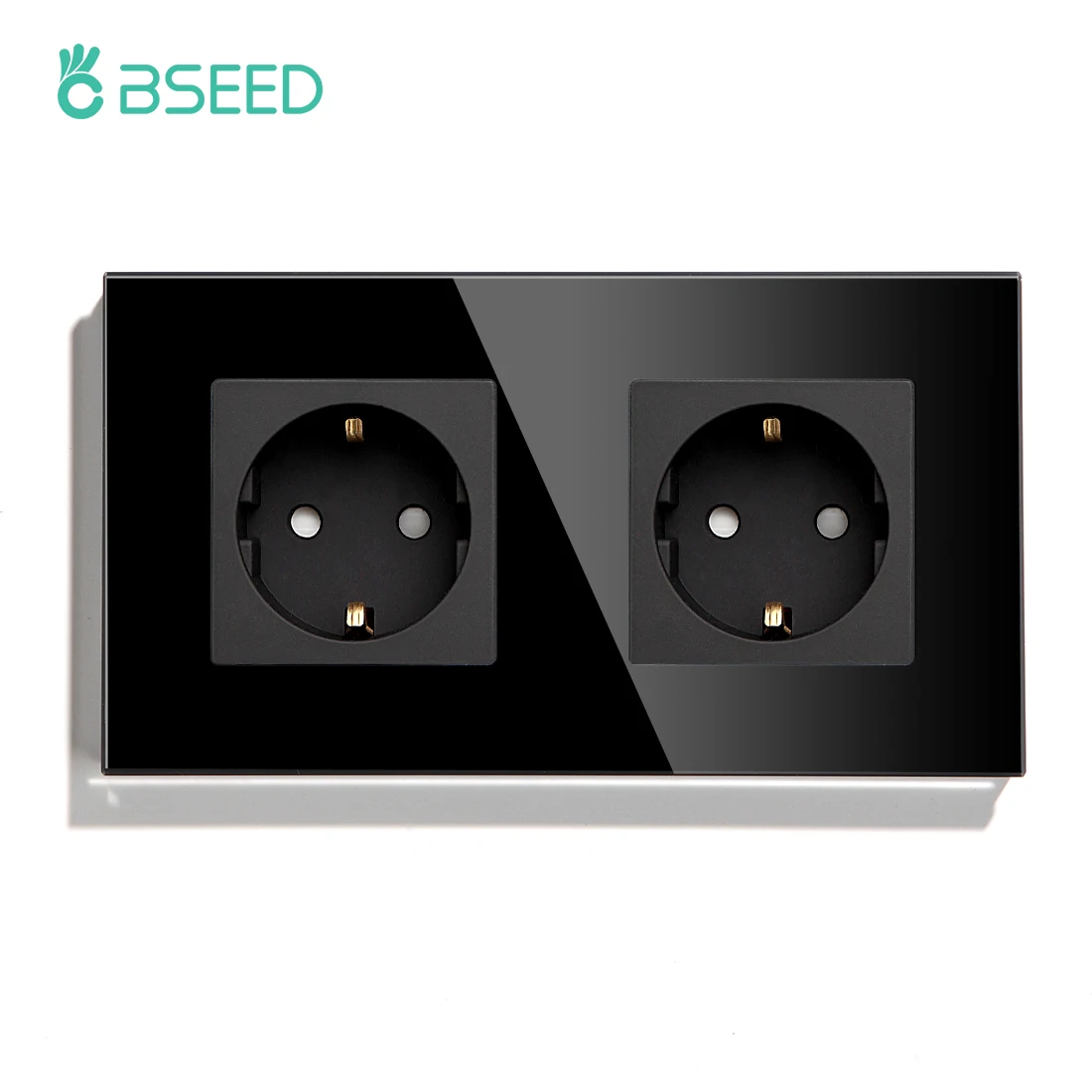 Настенные розетки BSEED стандарта ЕС, одна розетка, черная двойная рамка, стеклянная панель, тройные розетки, защита для детей, 16 А