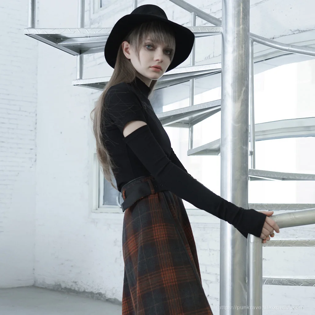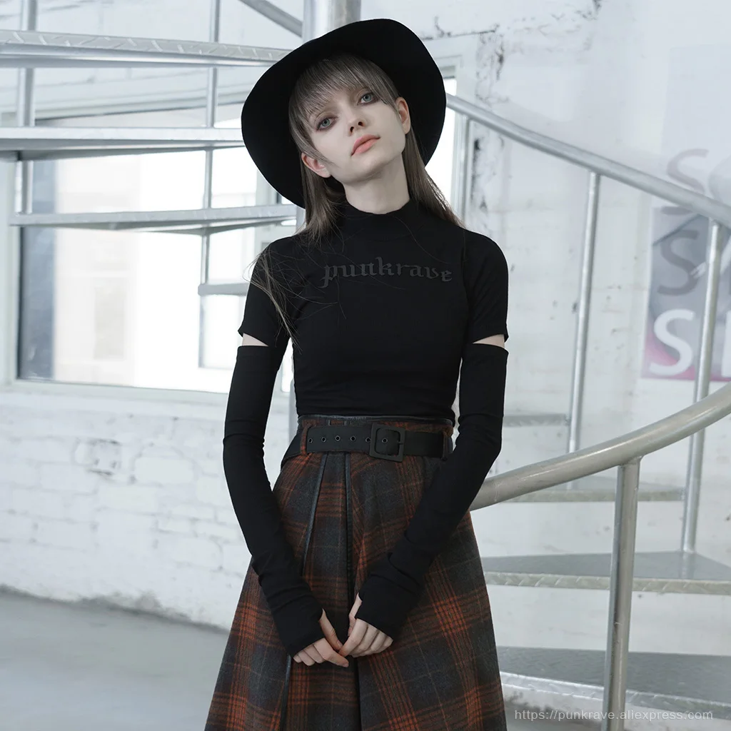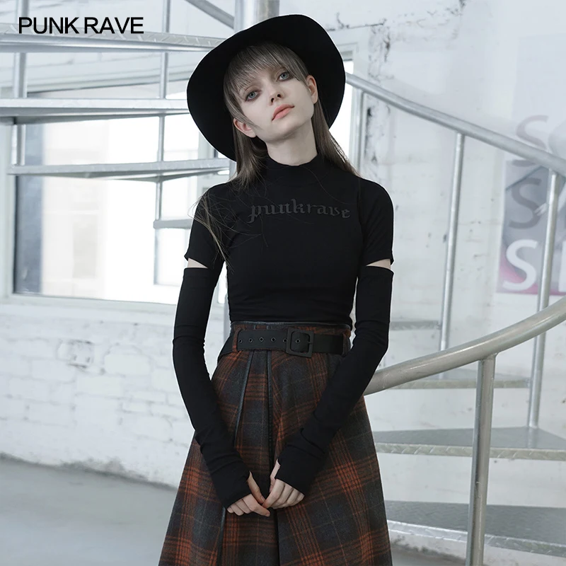 Женская силиконовая футболка в стиле панк-рейв, с принтом логотипа, с воротником-стойкой