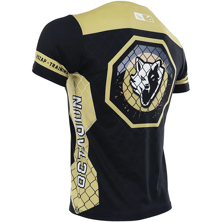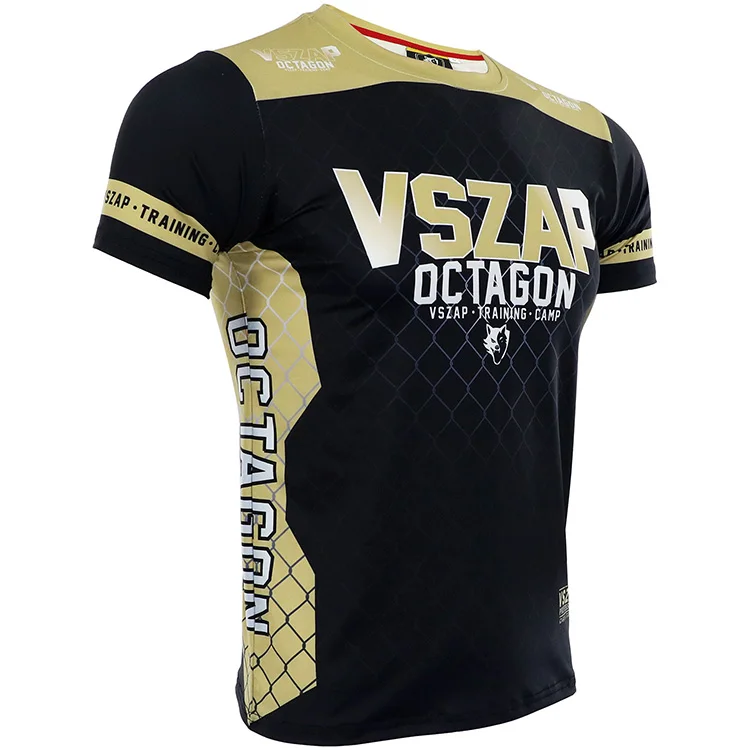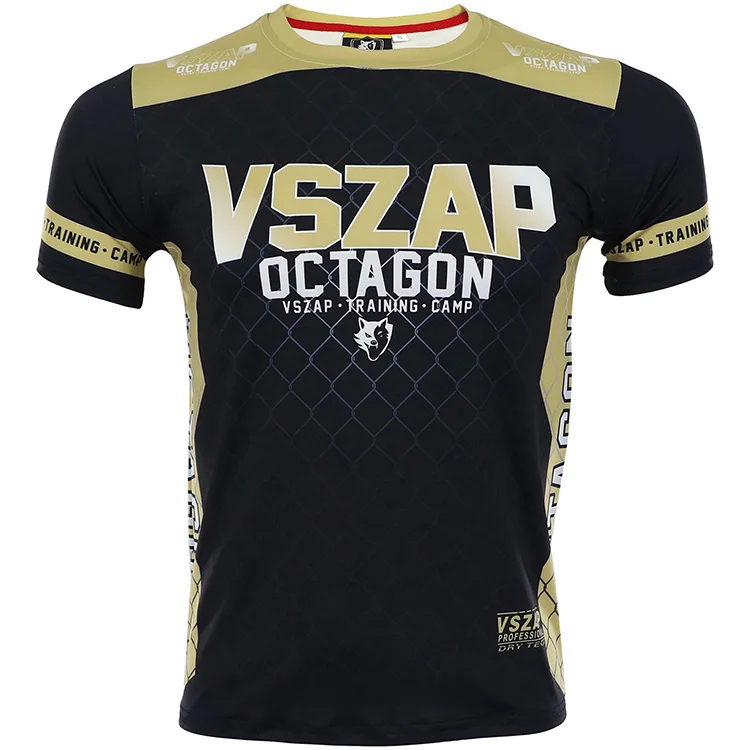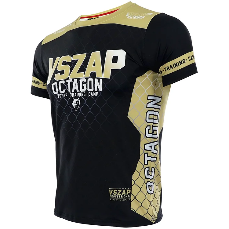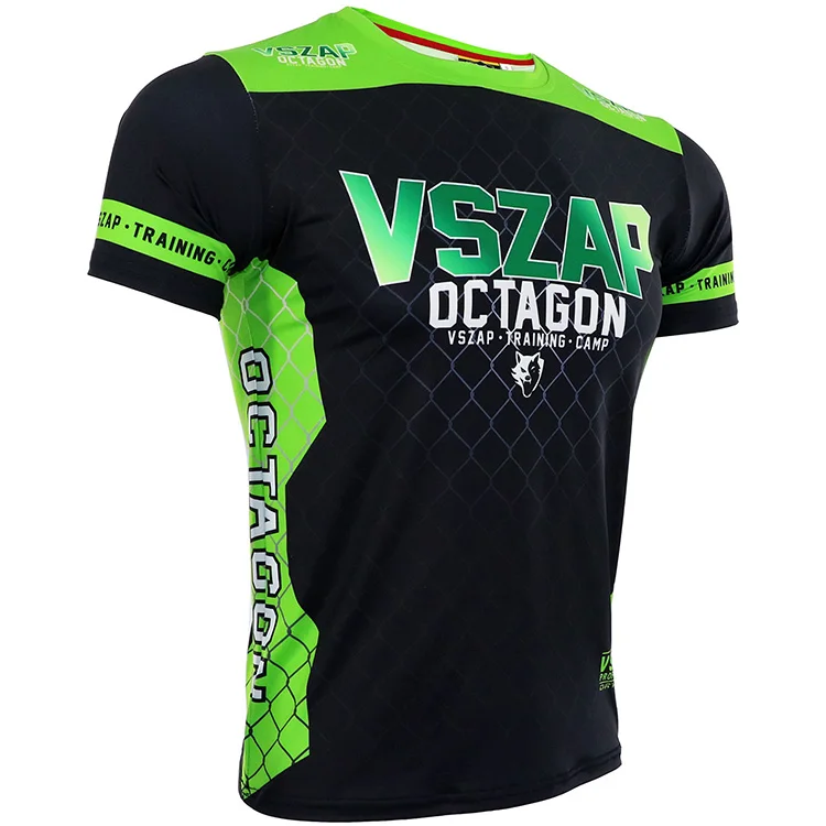 VSZAP брендовая мужская восьмиугольная клетка Боевая футболка бокса стрейч быстросохнущая с коротким рукавом тренировочная фитнес-рубашка