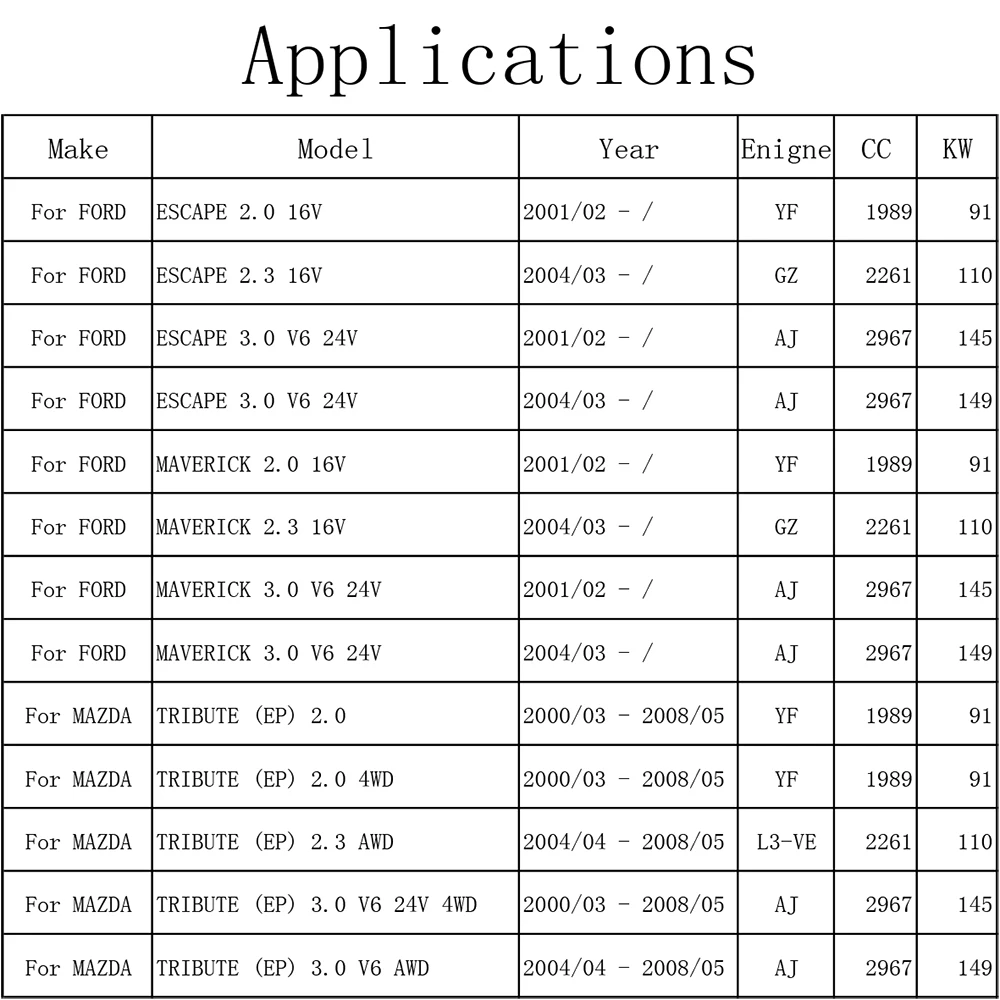 Приспособление:Для FORD ESCAPE 2,0 16V 2001/02 - /Для FORD ESCAPE 2,3 16V 2004/03 - /Для FORD ESCAPE 3,0 V6 24V 2001/02 - /Для FORD ESCAPE 3,0 V6 24V 2004/03 - /Для FORD MAVERICK 2,0 16V 2001/02 - /Для FORD MAVERICK 2,3 16V 2004/03 - /Для FORD MAVERICK 3,0 V6 24V 2001/02 - /Для FORD MAVERICK 3,0 V6 24V 2004/03 - /Для MAZDA TRIBUTE (EP) 2,0 2000/03 - 2008/05Для MAZDA TRIBUTE (EP) 2,0 4WD 2000/03 - 2008/05Для MAZDA TRIBUTE (EP) 2,3 AWD 2004/04 - 2008/05Для MAZDA TRIBUTE (EP) 3,0 V6 24V 4WD 2000/03 - 2008/05Для MAZDA TRIBUTE (EP) 3,0 V6 AWD 2004/04 - 2008/05