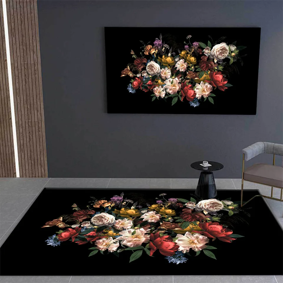 ColorBlack Carpet With Fresh Flower