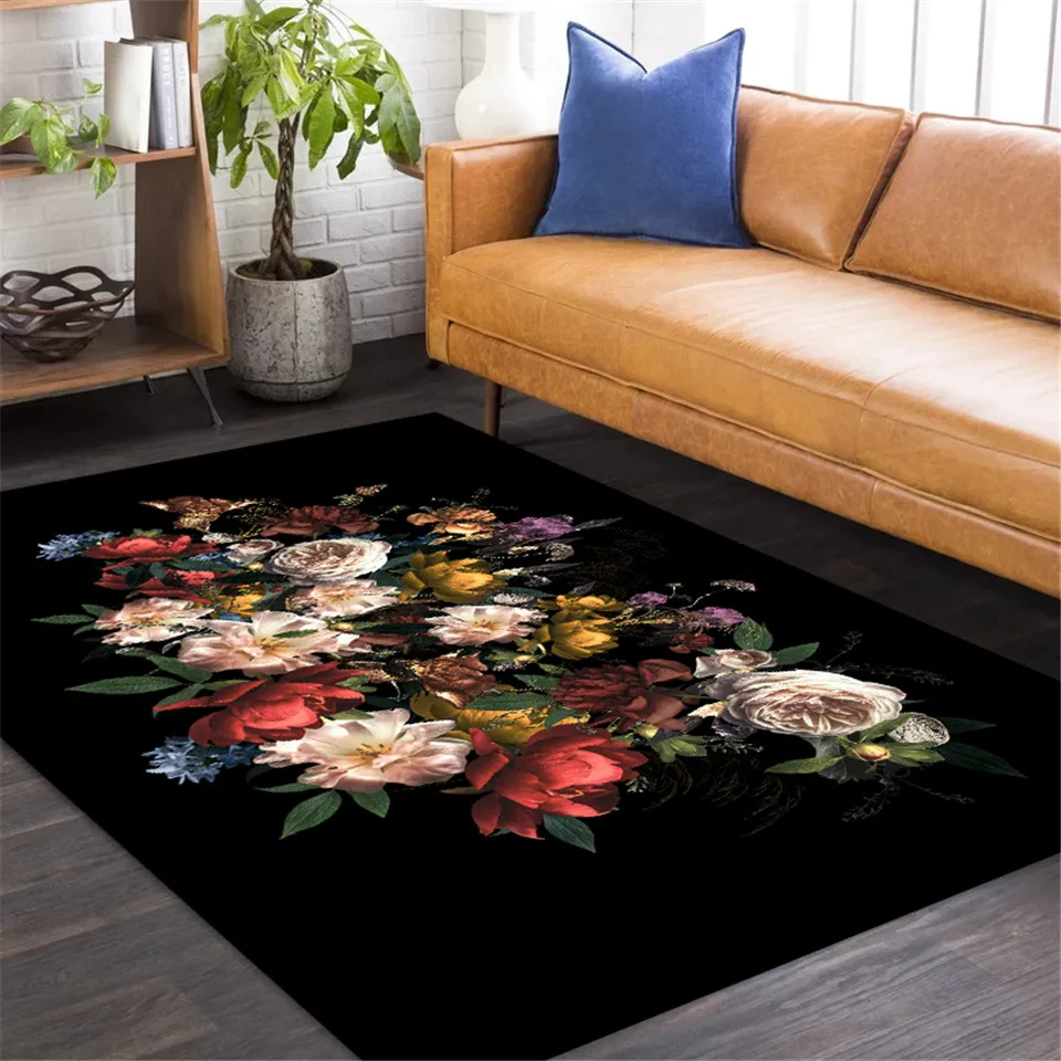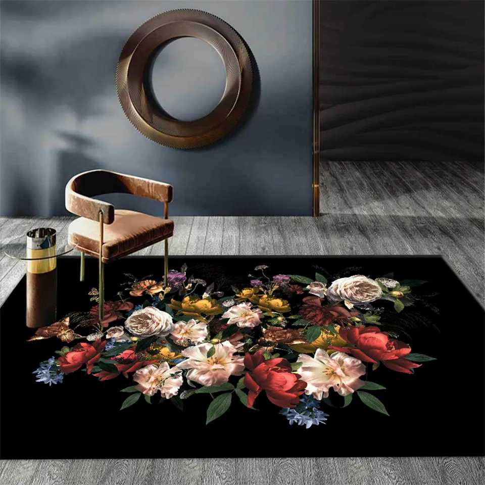 Роскошный Черный Европейский ковер с большими цветами в стиле ретро, классические цветочные коврики для спальни, прихожей, коврик для гостиной