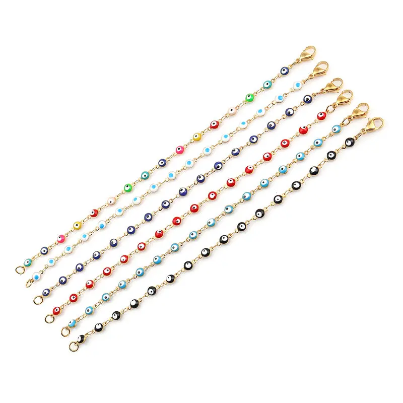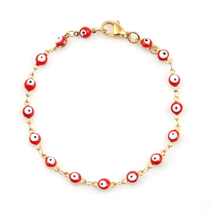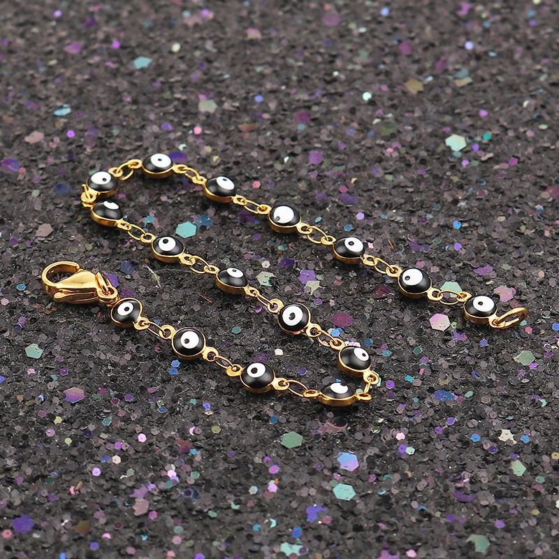 Браслеты из нержавеющей стали с эмалью для женщин, Модный Ювелирный Браслет с бусинами от сглаза золотого, синего, красного цвета, на удачу, Подарочная бижутерия, 1 шт.