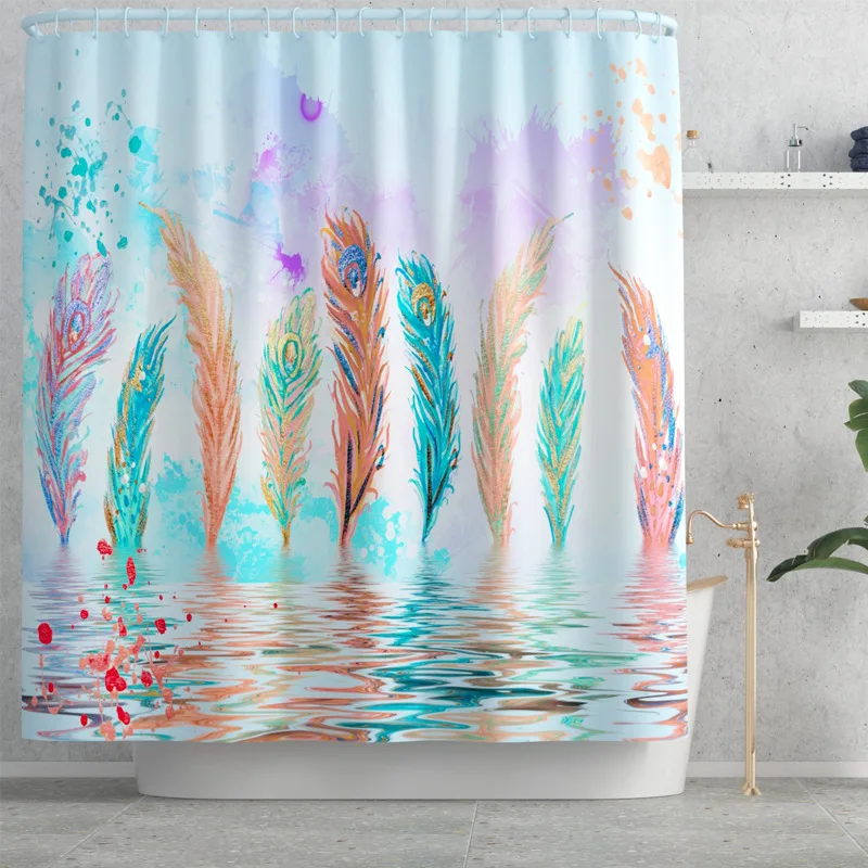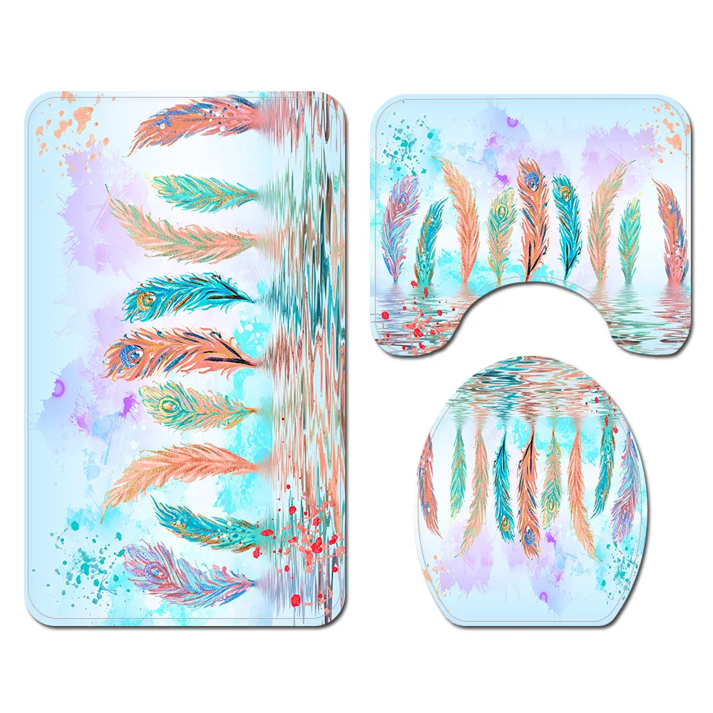 Пуховый коврик для ванной с принтом и водонепроницаемой душевой занавеской, набор ковров для ванной, противоскользящий напольный ковер, впитывающий u-образный коврик для унитаза