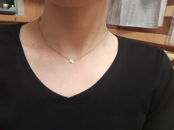 Красивая, аккуратно сделанная цепочка-чокер. Выглядит как настоящее золото, камушек переливаеться, никаких дефектов на изделии не видно. Кто любит минимализм обязательно возьмите. Брала как комплект к серьги у этого же продавца.