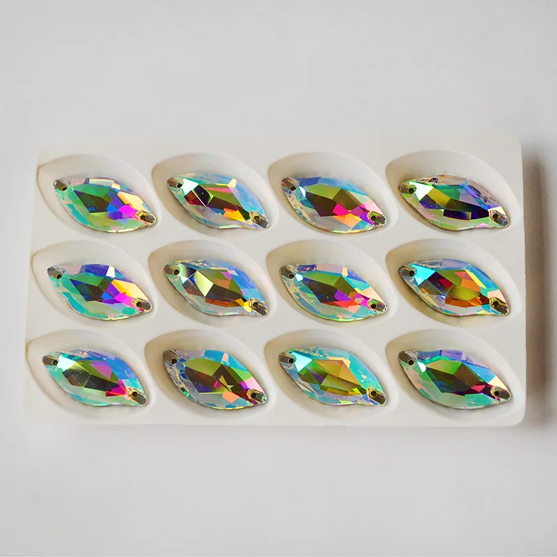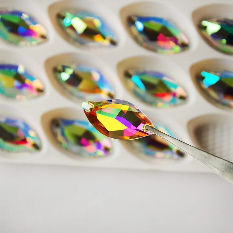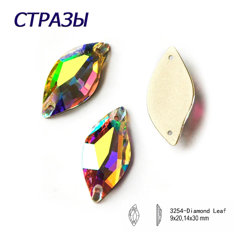 CTPA3bI кристалл AB Алмазный лист шитье стеклянные Стразы пришивные на точку грань Кристаллы с плоской задней частью два отверстия пришивные камни для одежды