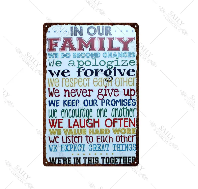 Забавный металлический фотопостер, домашний декор, винтажный жестяной знак, правила семьи, Настенный декор для гаравечерние, домашний декор, металлический постер