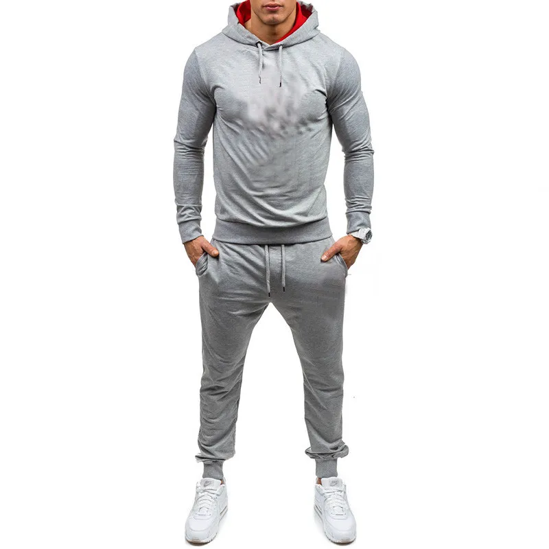Мужской Повседневный хлопковый спортивный костюм с капюшоном, однотонная толстовка с капюшоном + штаны, Осень-зима 2019