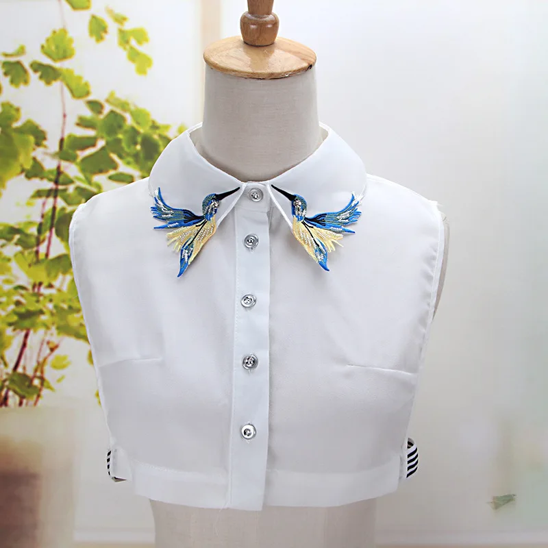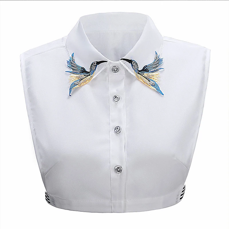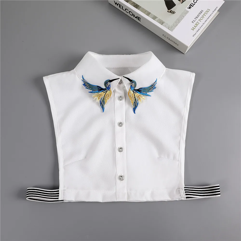 Sitonjwly женская рубашка с вышитым рисунком Птицы Съемный свитер с фальшивым воротничком рубашка с отворотом съёмный воротник для блузки