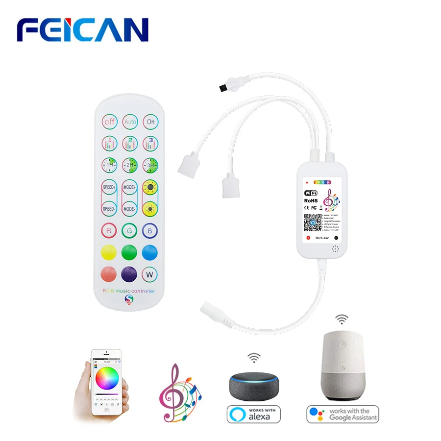 Пульт дистанционного управления для светодиодных лент RGB DC5-24V, 2835, Wi-Fi, работает с Alexa и Google Home