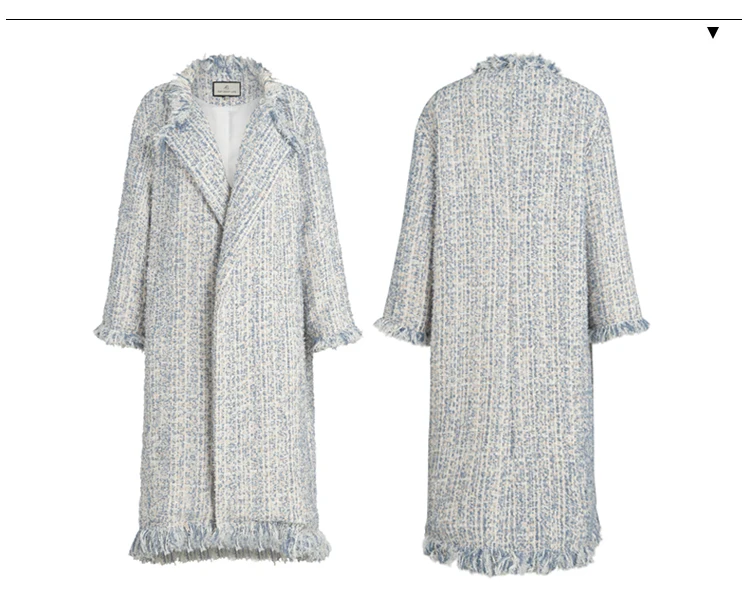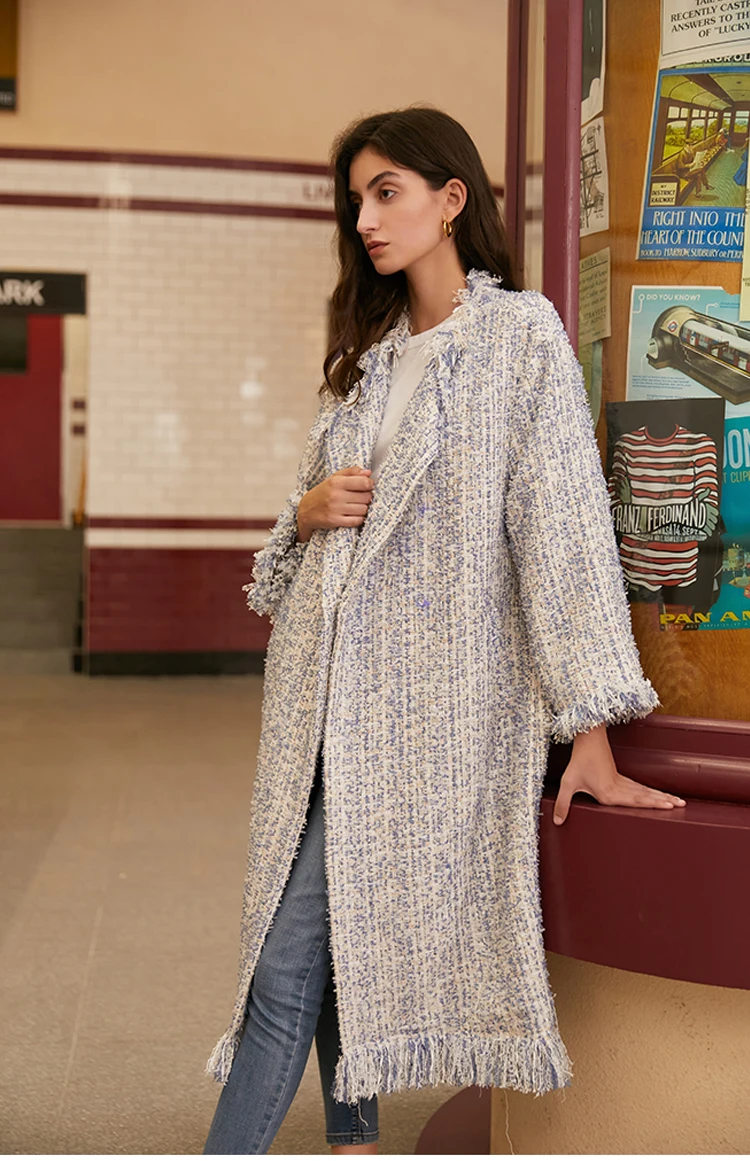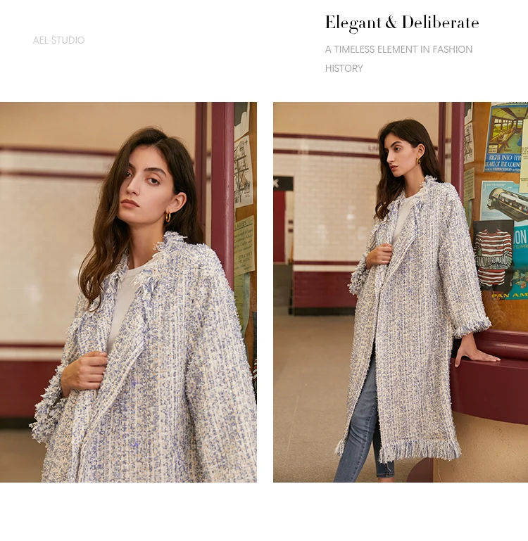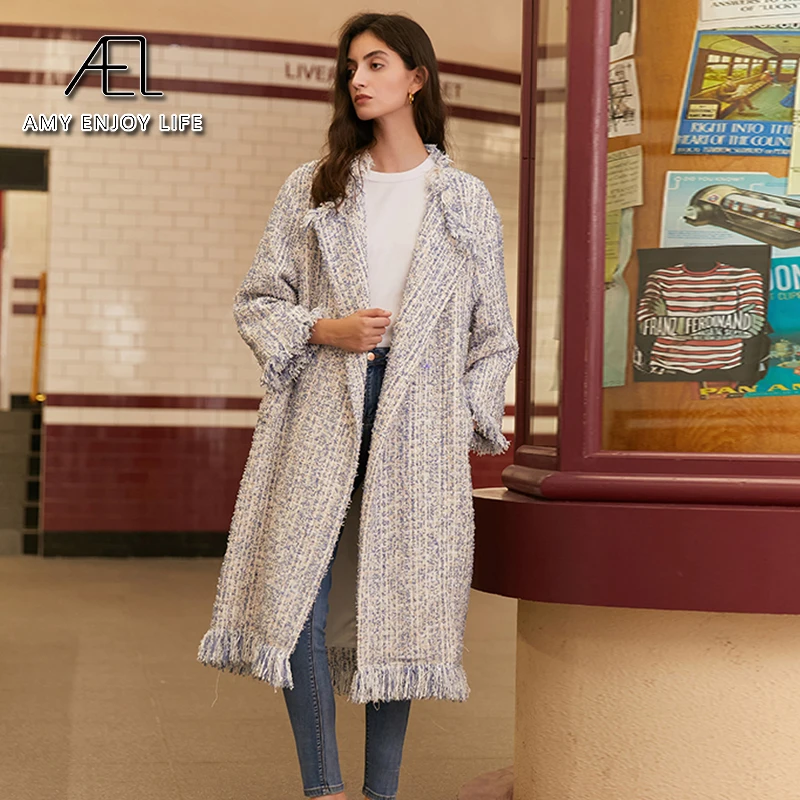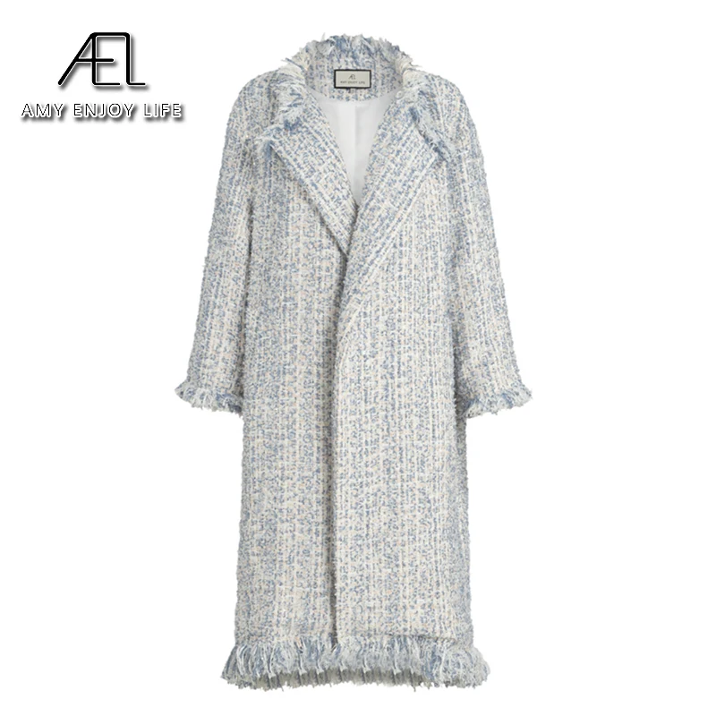 Женский твидовый Тренч AEL, плотный свободный прямой длинный Тренч с кисточками, уличная одежда, осень-зима icon star icon star icon star icon star icon star