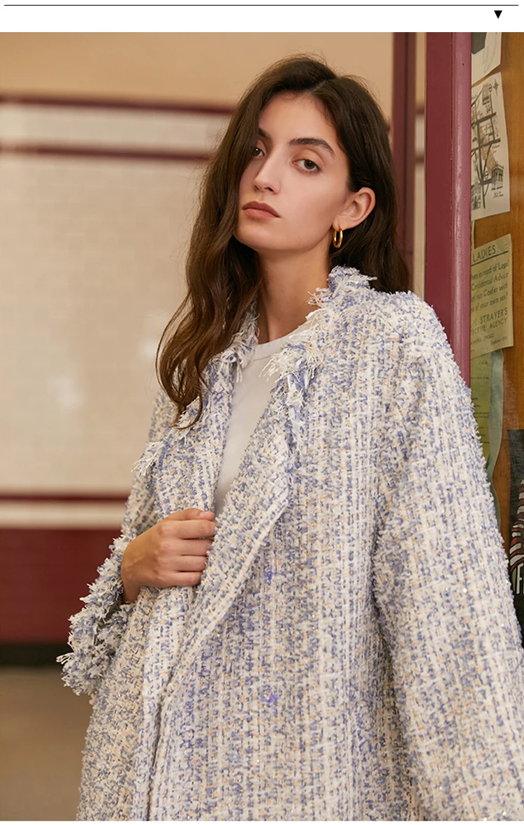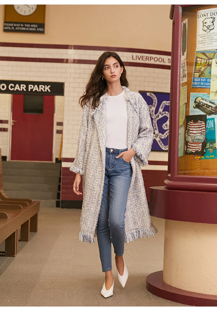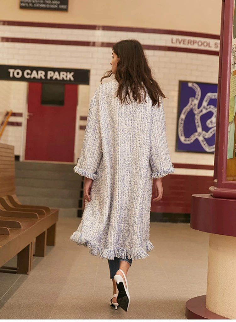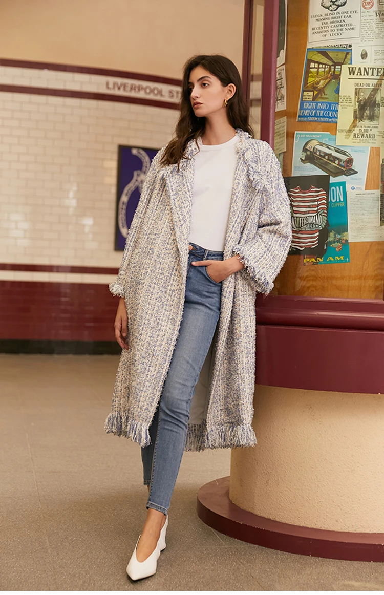 Женский твидовый Тренч AEL, плотный свободный прямой длинный Тренч с кисточками, уличная одежда, осень-зима icon star icon star icon star icon star icon star