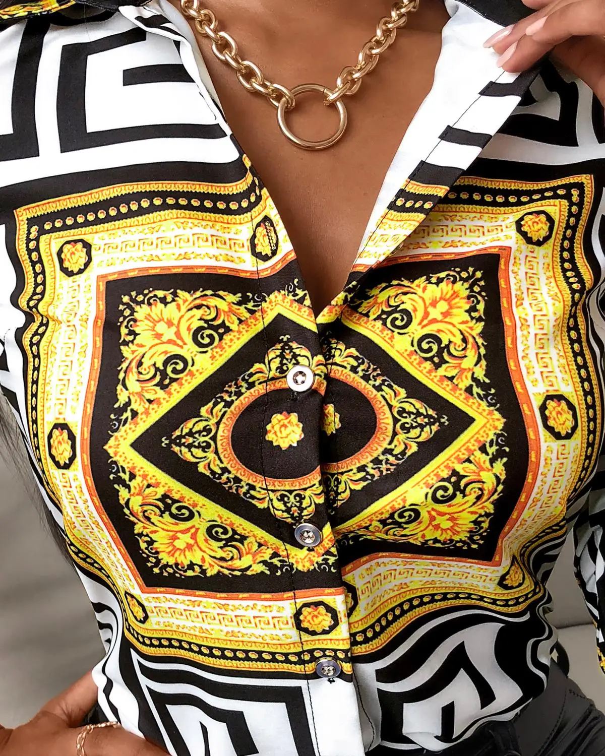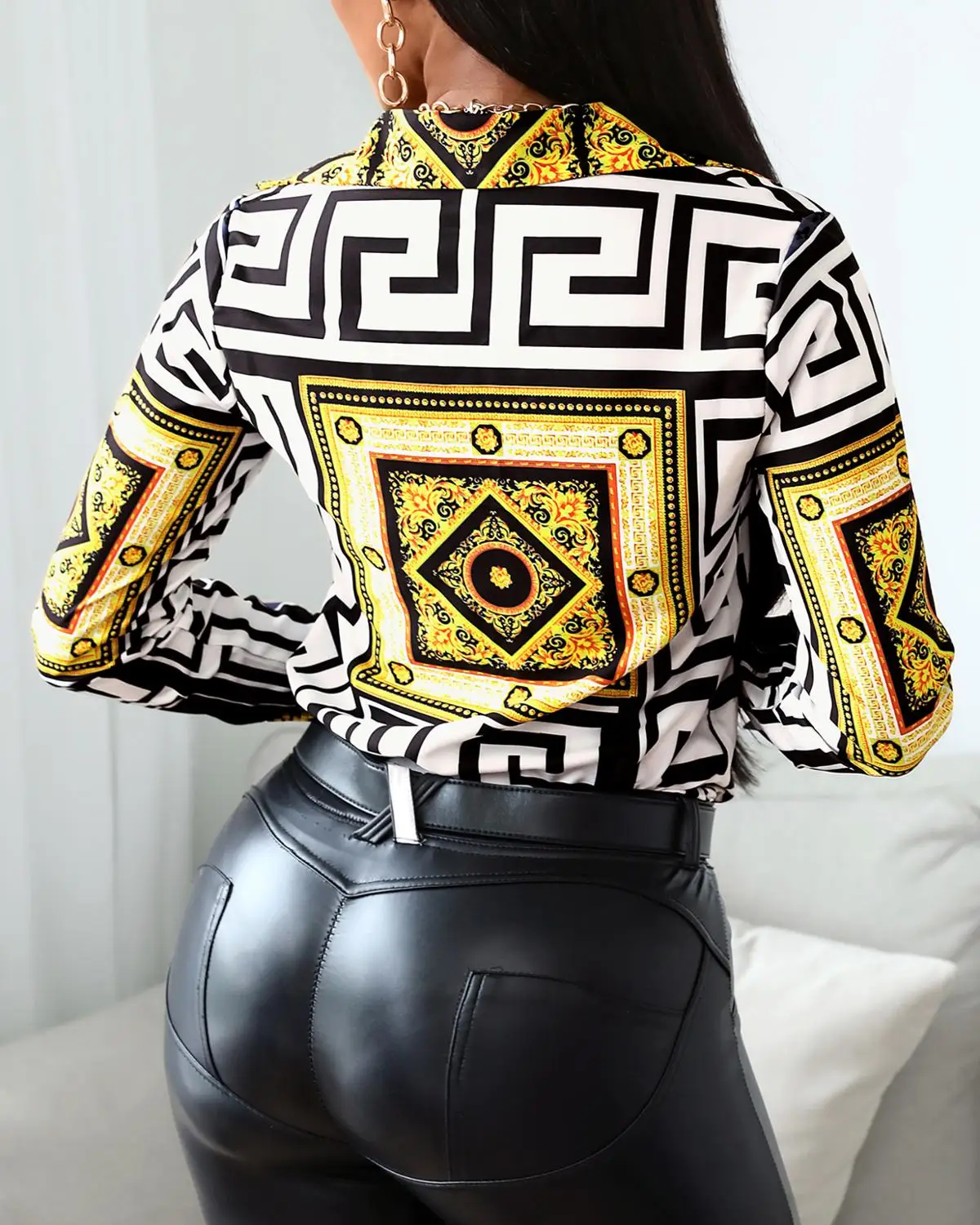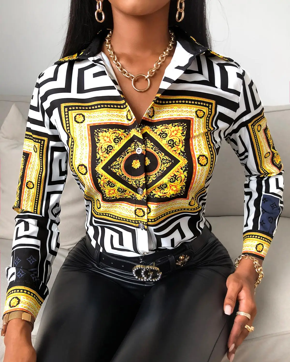 Женская Повседневная Осенняя блузка с длинным рукавом и принтом, рубашка на пуговицах и отложным воротником в стиле барокко, 2020