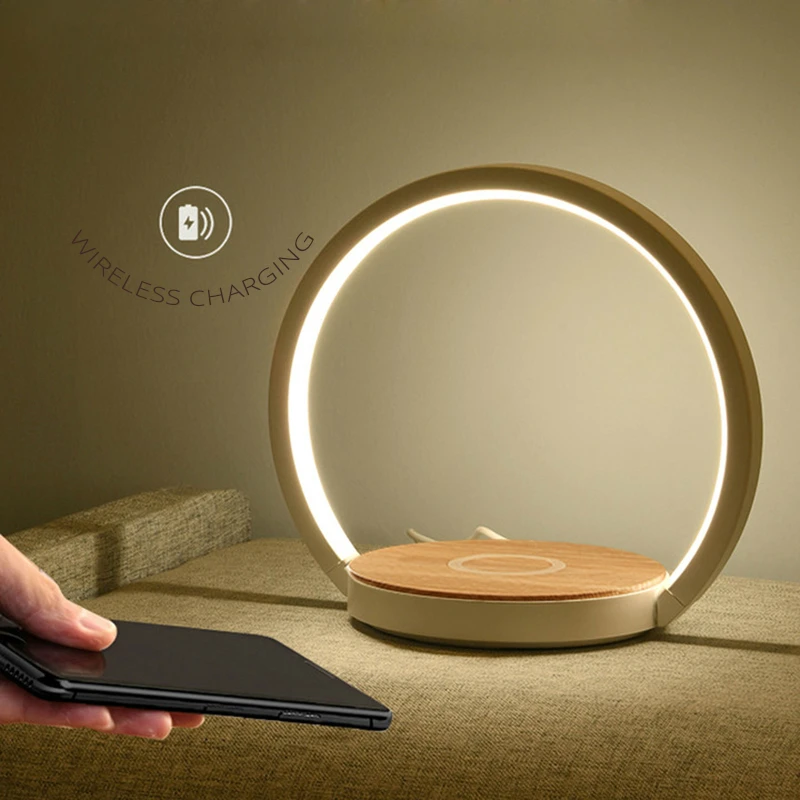 Настольные лампы для спальни, кабинета, лампы для чтения, защита для глаз, прикроватная лампа с сенсорным затемнением, Беспроводная зарядка телефона