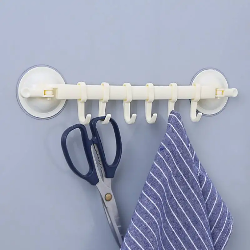 Настенная вакуумная стойка на присоске, 6 крючков, держатель для по...
