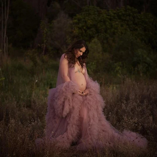 Элегантный розовый тюлевый халат платье для беременных для фотосъем...