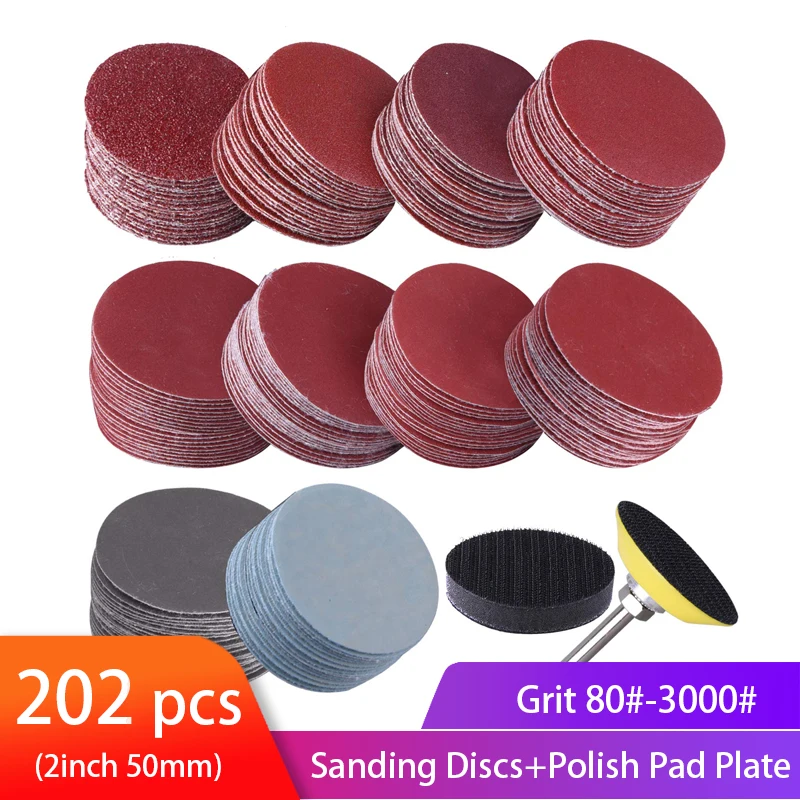 200 шт. шлифовальный диск, 10 решеток, 20 штук для каждой зернистости: 80/ 180/ 240/ 320/ 400 /600 /800 /1000 /2000 /3000;+ 1 подкладка и 1 Поликарбонат