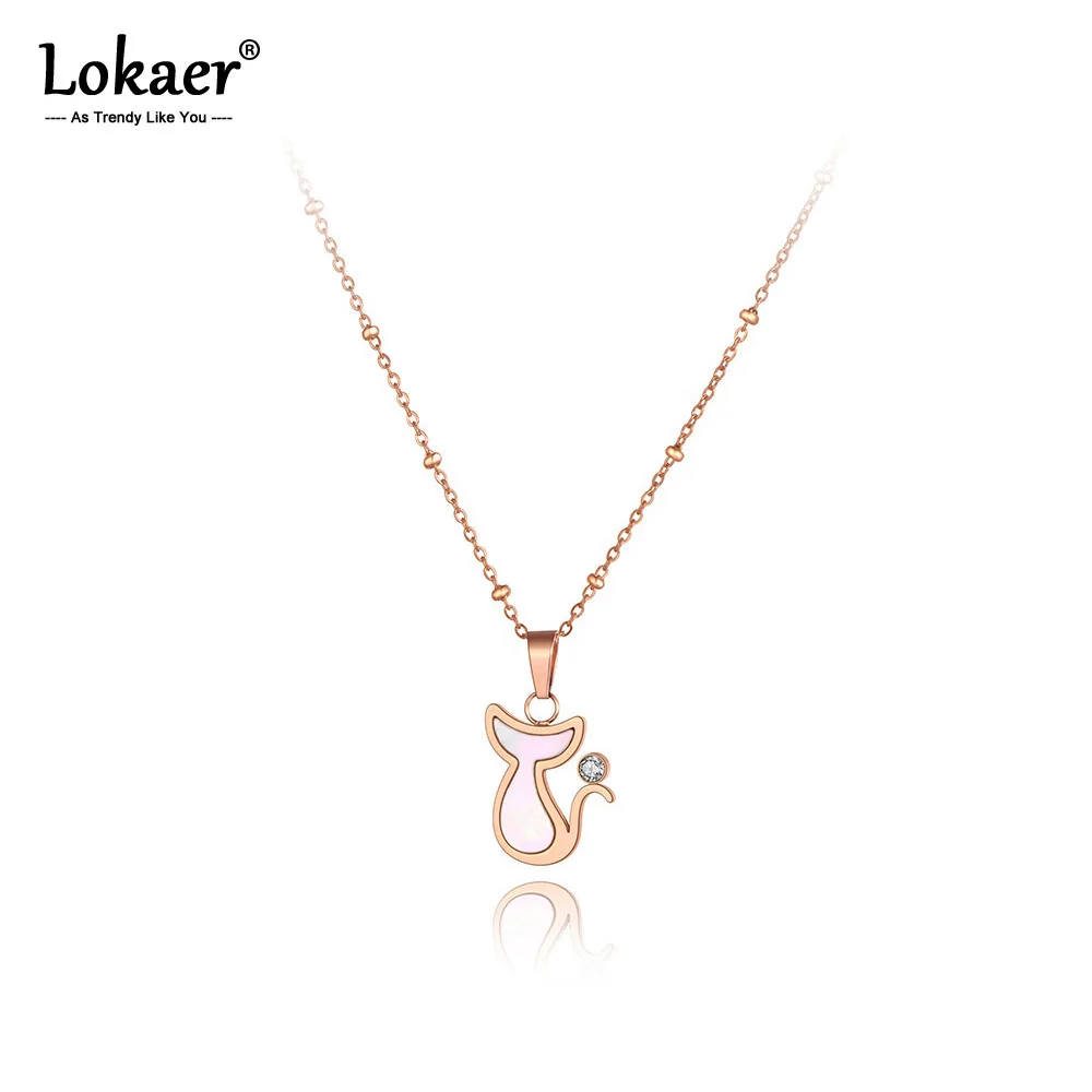 Lokaer ожерелье-чокер из титана из нержавеющей стали с котом и животными для женщин и девочек, модное ожерелье с подвеской из фианита N20250