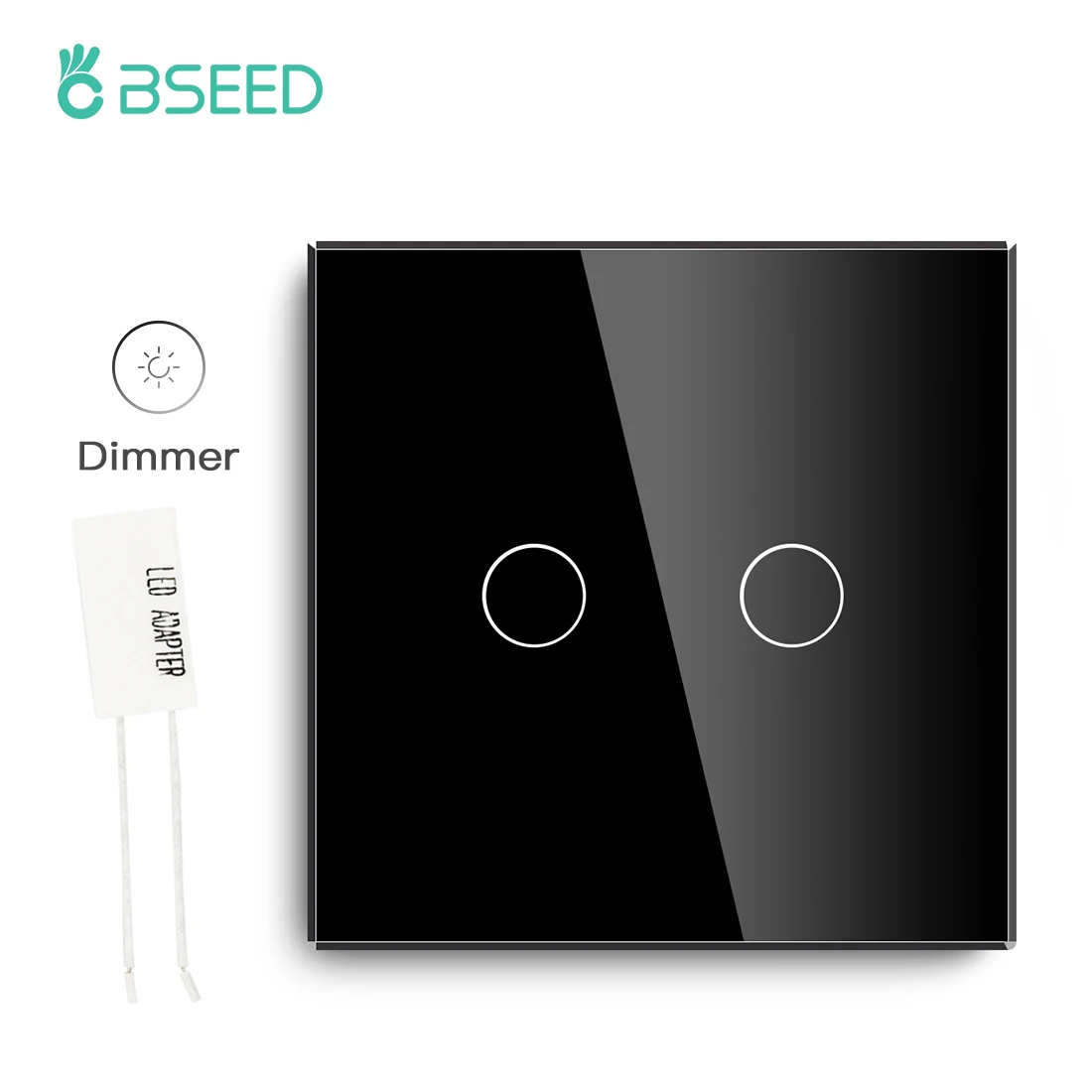 BSEED Dimmer сенсорный экран Switch1/2Gang 1Way светодиодный настенный светильник с регулируемой яркостью Настенные переключатели с длительным нажатием диммер Кристалл темная подсветка светильник черный