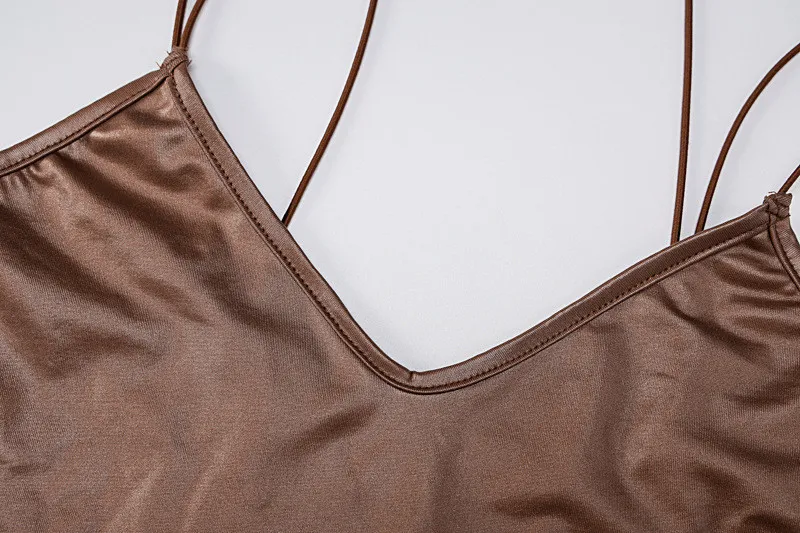 Женское платье миди из искусственной кожи с разрезом, на бретелях, с v-образным вырезом, с открытой спиной, облегающее, сексуальное, уличная одежда, вечерние, элегантные, для клуба, Осень-зима