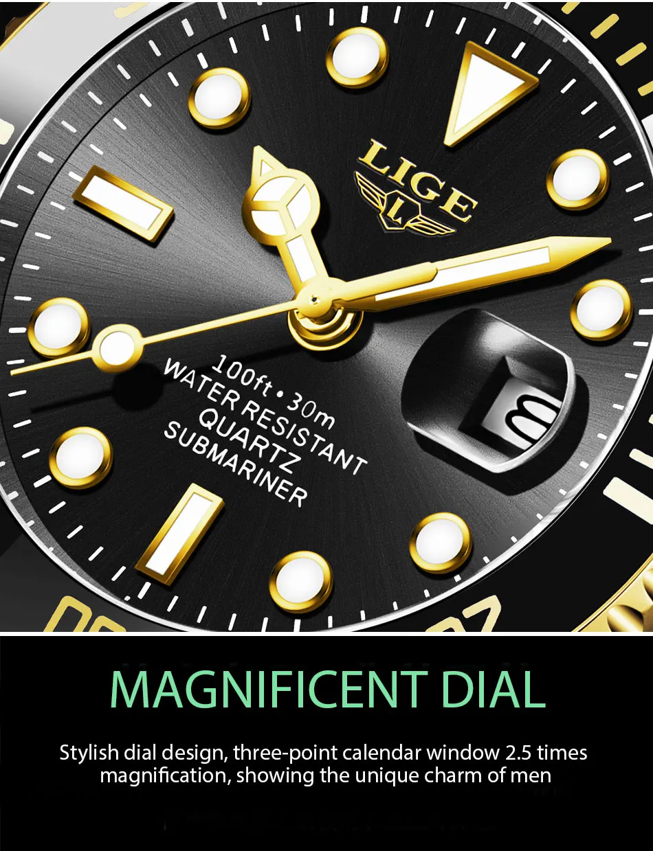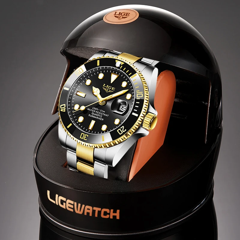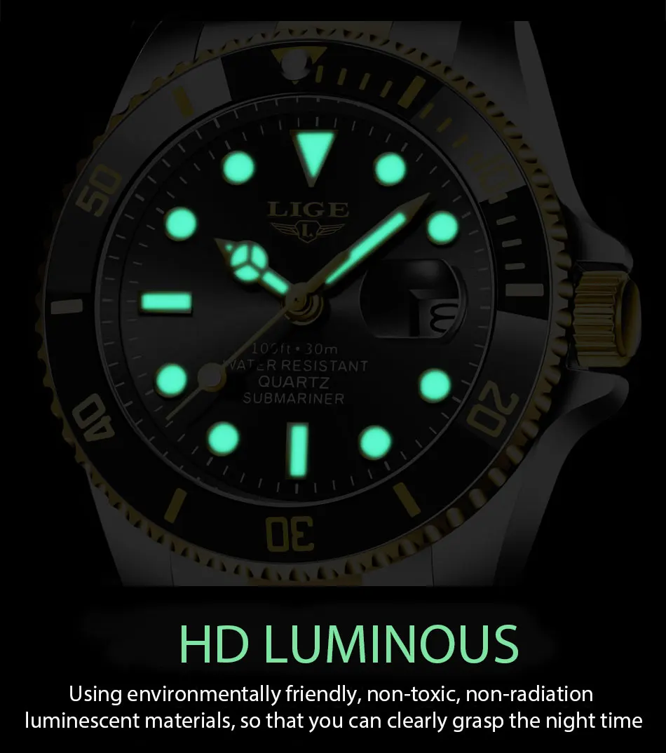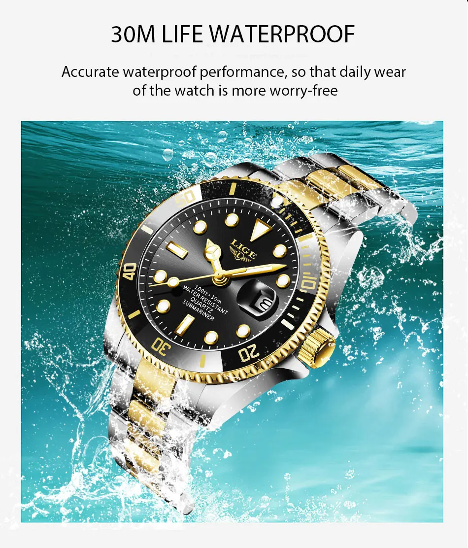 LIGE Лидирующий бренд, роскошные модные новые мужские часы 30ATM, водонепроницаемые часы для свиданий, мужские спортивные часы, мужские кварцевые наручные часы, Relogio Masculino