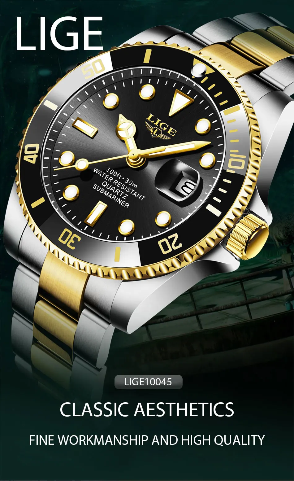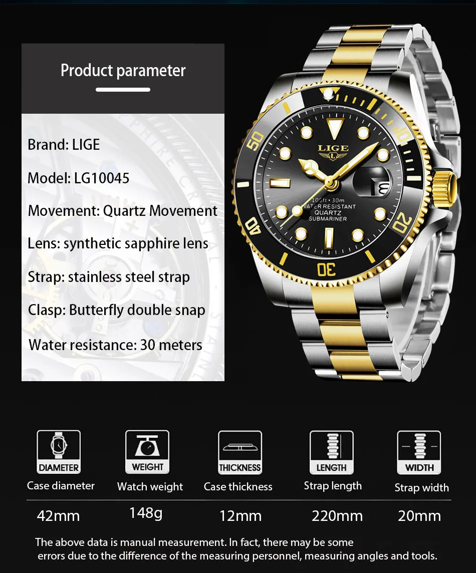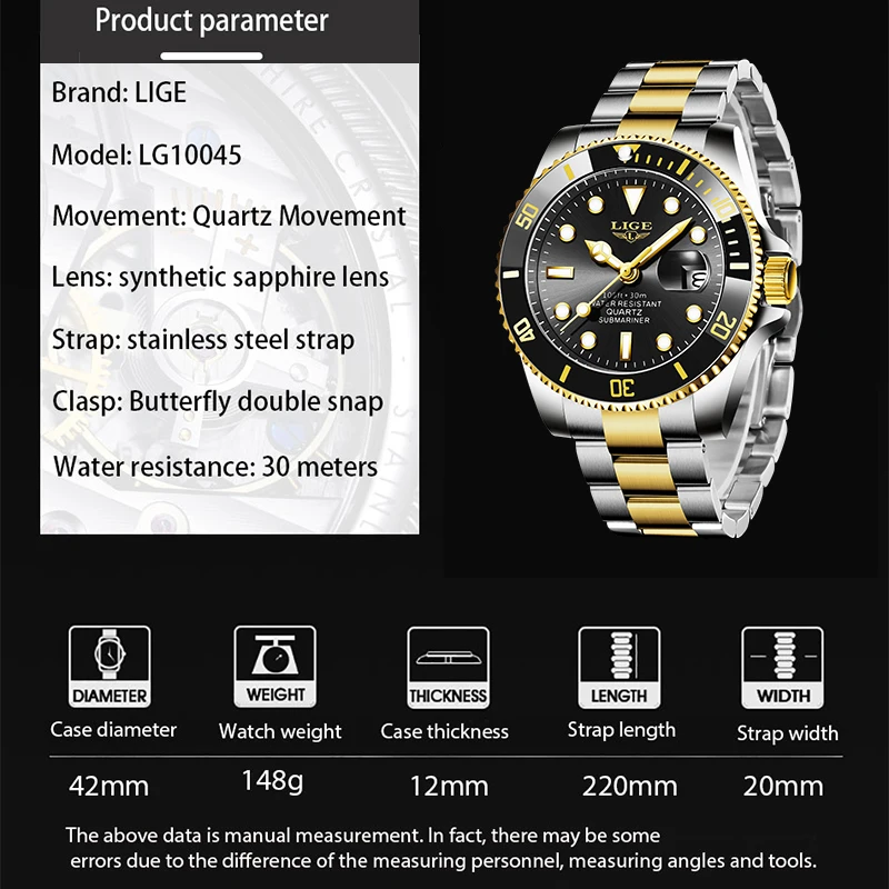 LIGE Лидирующий бренд, роскошные модные новые мужские часы 30ATM, водонепроницаемые часы для свиданий, мужские спортивные часы, мужские кварцевые наручные часы, Relogio Masculino