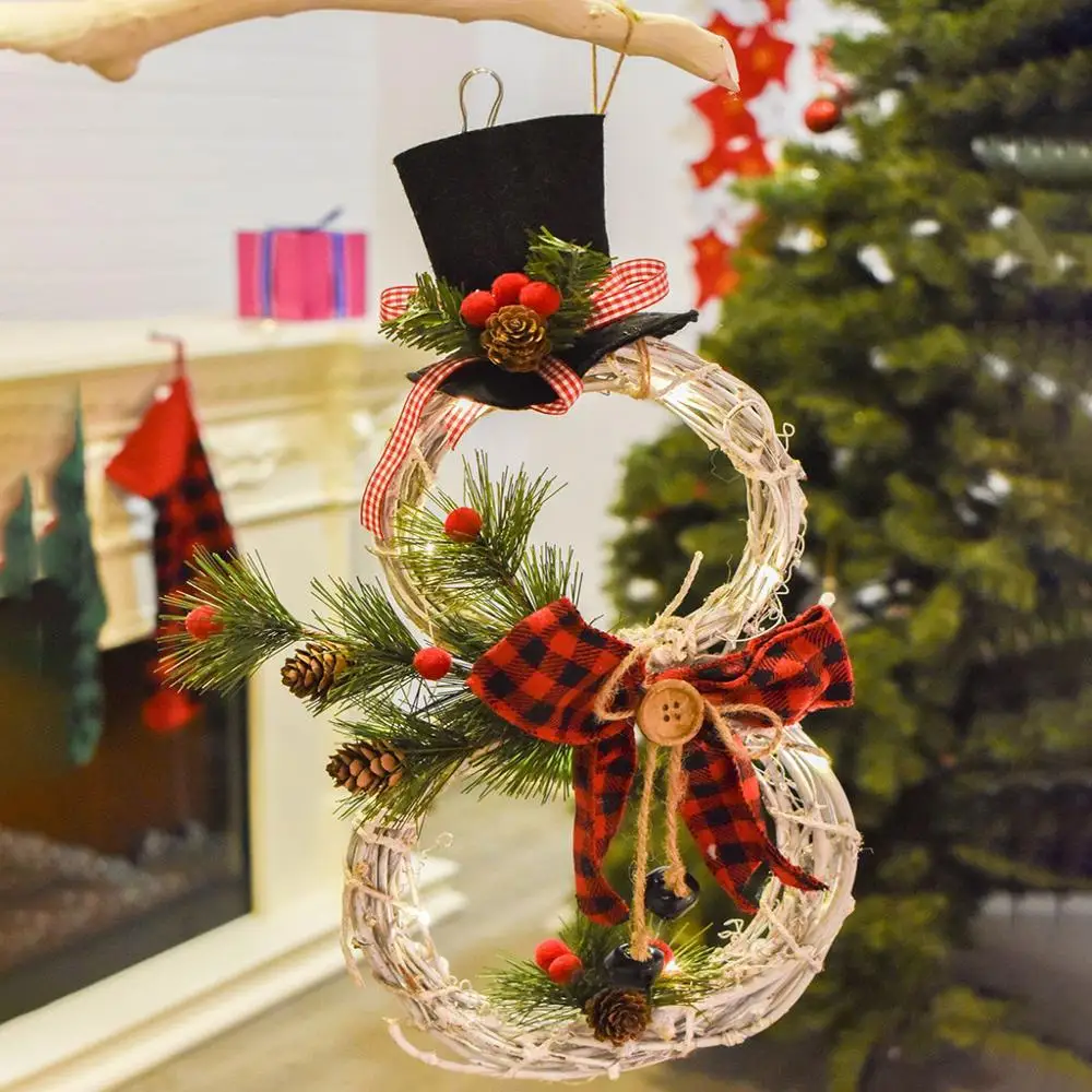 Новинка 2020, рождественские подвесные украшения, светодиодные огни, Рождественский венок со снеговиком, круглые двери из ротанга, украшение для рождественской елки