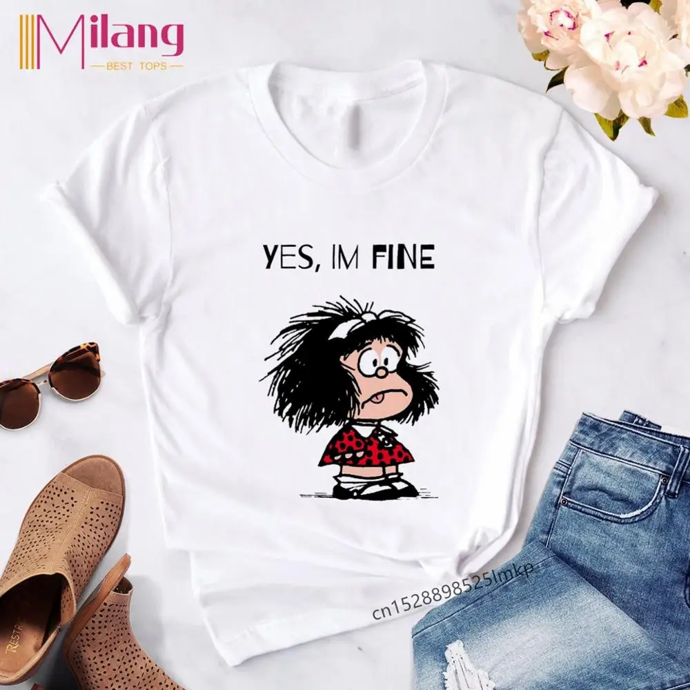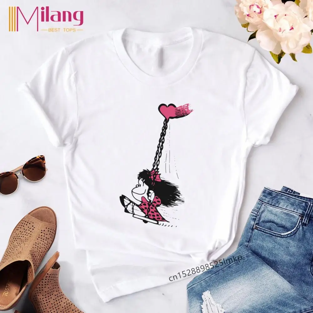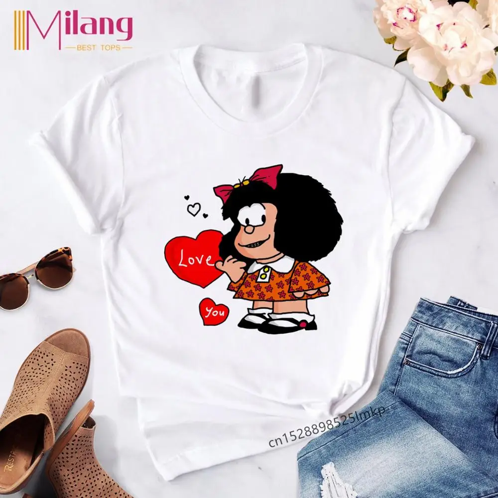 Футболка Mafalda женская с мультяшным принтом, модная рубашка, повс...