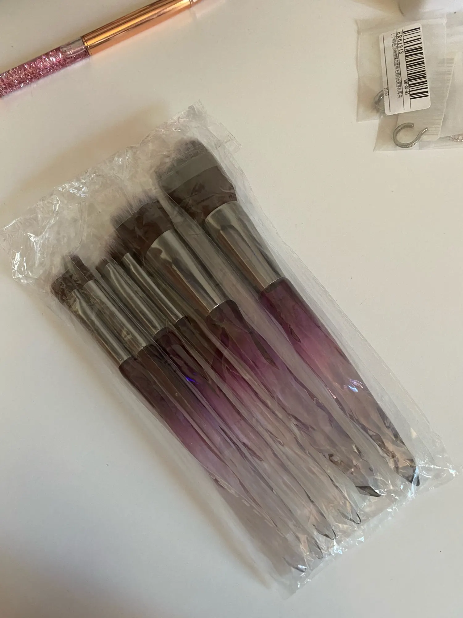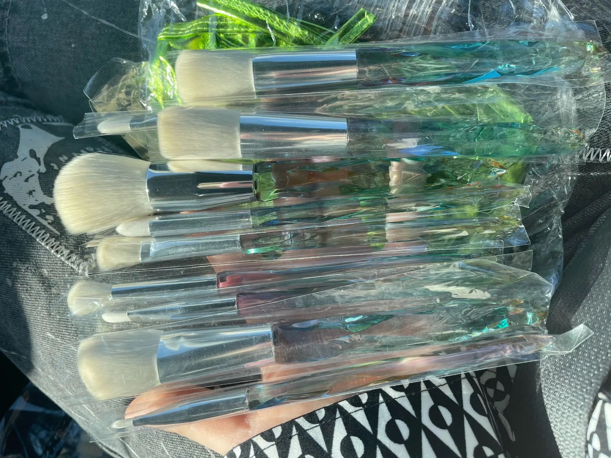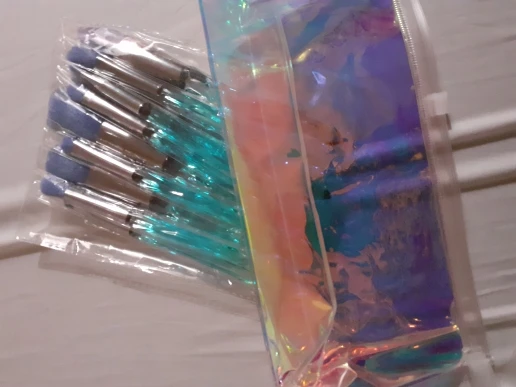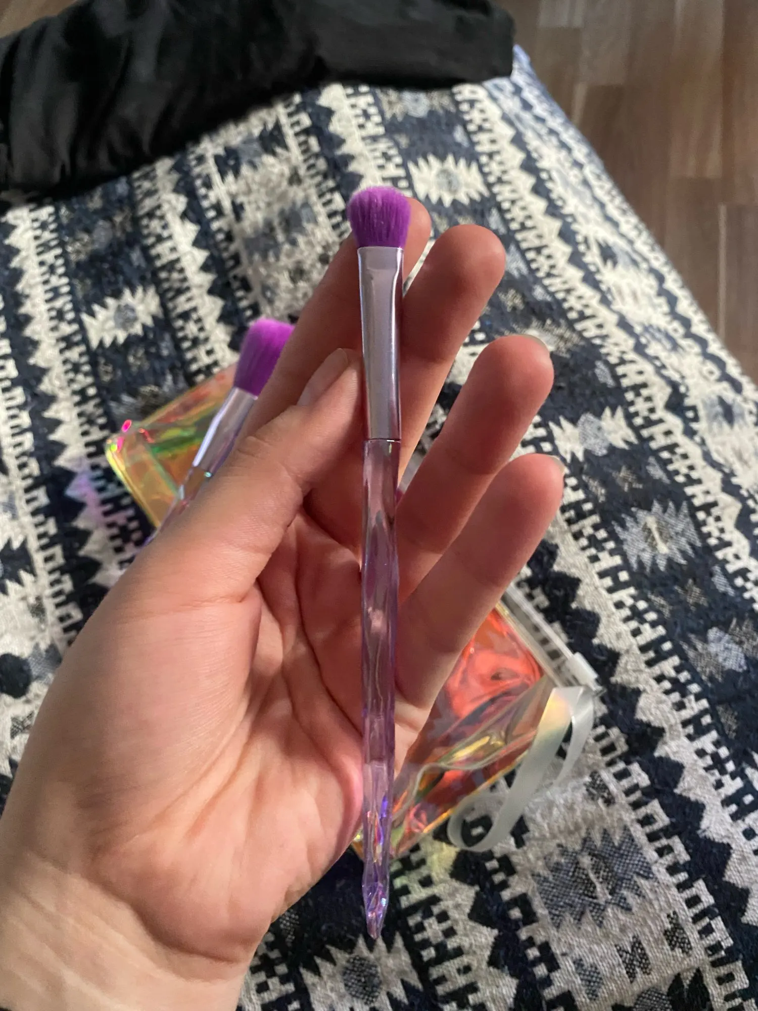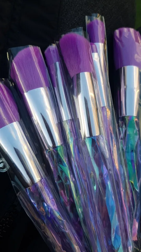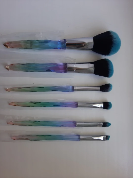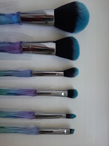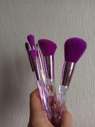 Кисти не плохие, на некоторых торчит ворс Мягкие, мне лично тяжело ими наносить тени, возможно просто ещё не наловчилась Покрытие радужное царапается даже ногтем, советую держать в мягкой косметичке отдельно от друг друга Продавец отправил в почтомат новой почты