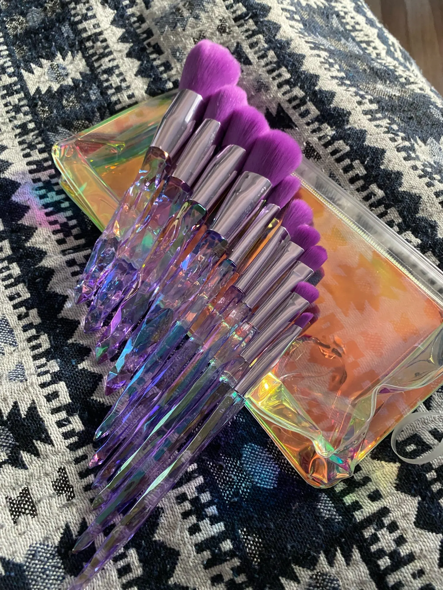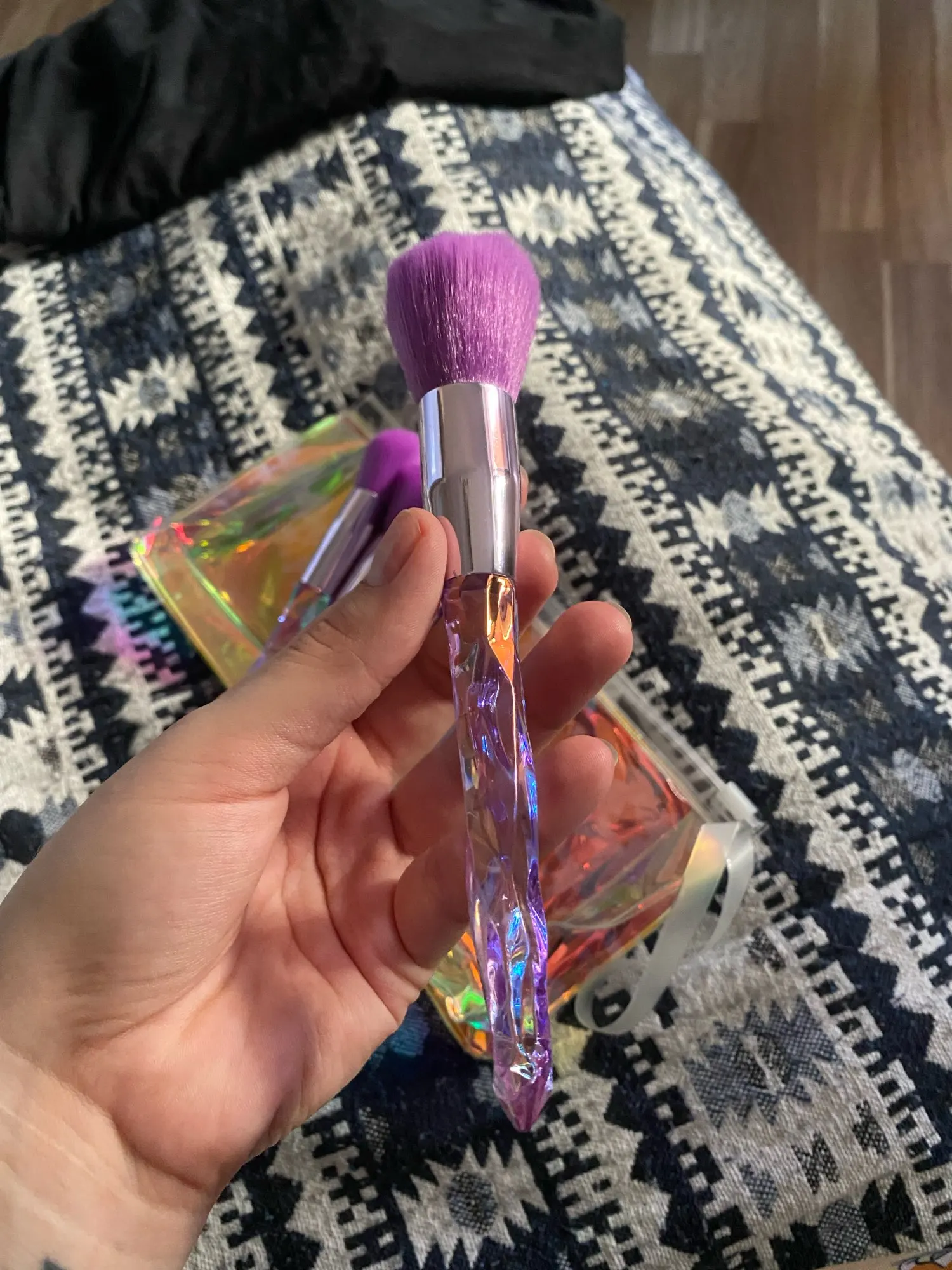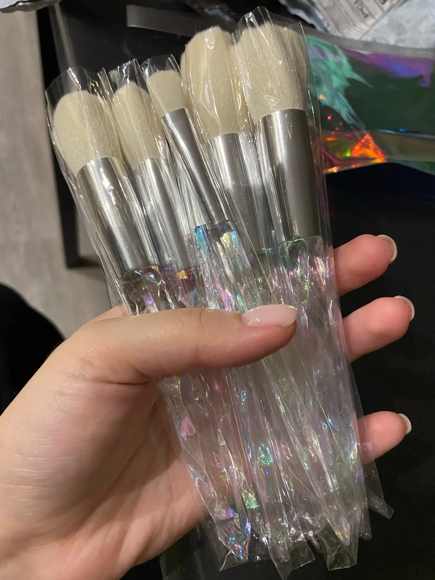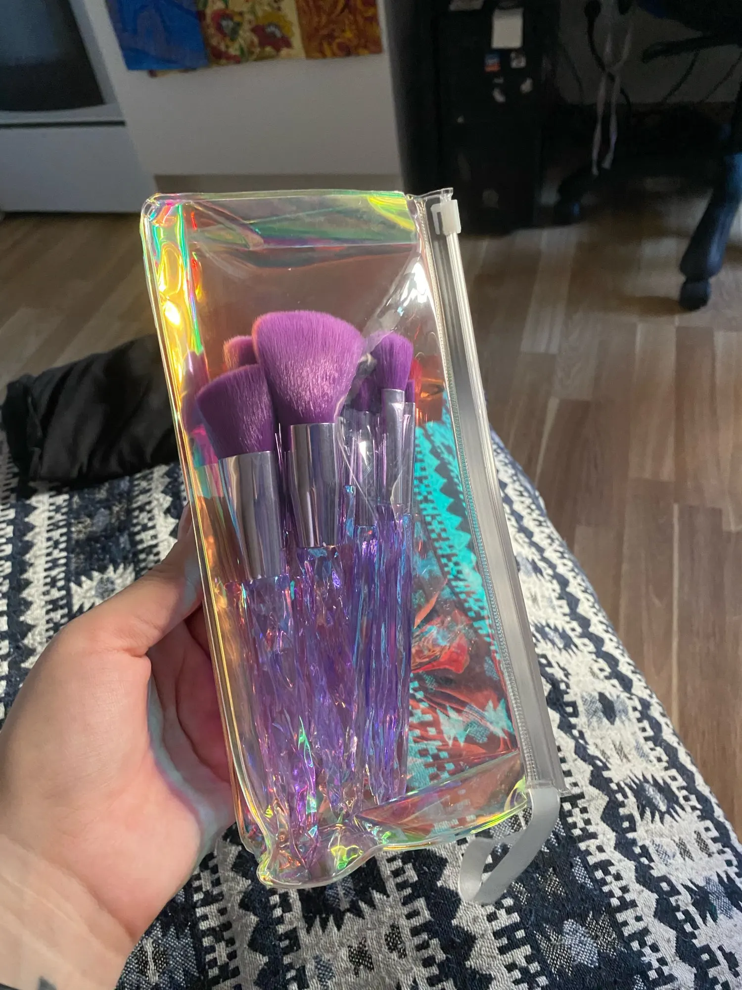 Кисти не плохие, на некоторых торчит ворс Мягкие, мне лично тяжело ими наносить тени, возможно просто ещё не наловчилась Покрытие радужное царапается даже ногтем, советую держать в мягкой косметичке отдельно от друг друга Продавец отправил в почтомат новой почты