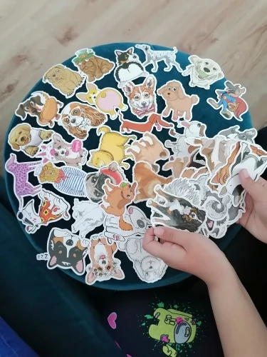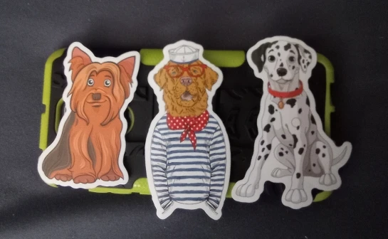 наклейки отличные, очень нравятся детям( все любят собак), качество принта хорошее, немаленькие по размеру, доставка быстрая, меньше месяца.
