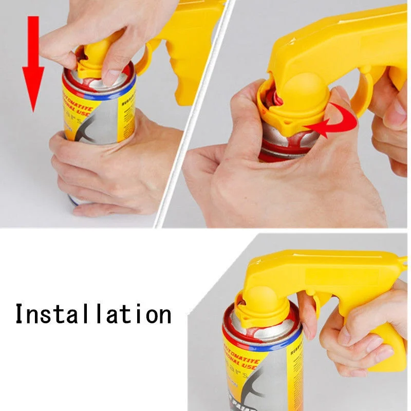 Спрей адаптер аэрозоль пистолет ручка с полным захватом Блокировка курка воротникСпецификация:Цвет: желтый, черныйМатериал: пластикОсобенности:Легко подходит и используетсяОн дает профессиональные результаты каждый разОн поставляется с системой закрутки и блокировкиВы должны просто разместить его в верхней части банки, чтобы убедиться, что насадка находится в центре диафрагмы аппликатораПоверните фиксатор для обеспеченияТеперь просто нажмите на спусковой механизм и покраситьПодойдет практически для всех аэрозолей