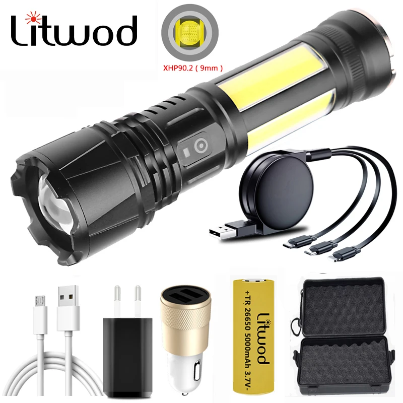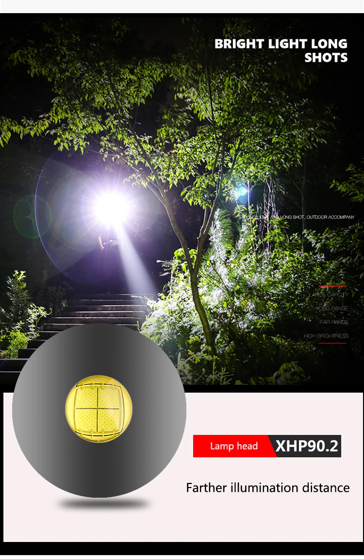 Фонарик XHP90.2, светодиодный, 4-ядерный, с аккумулятором 18650, 26650
