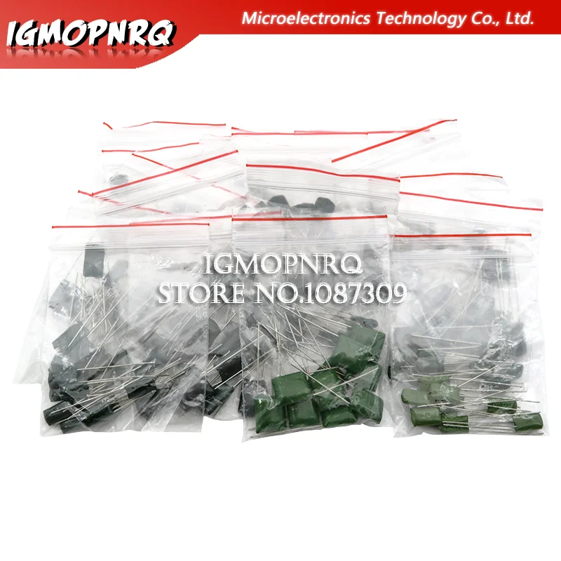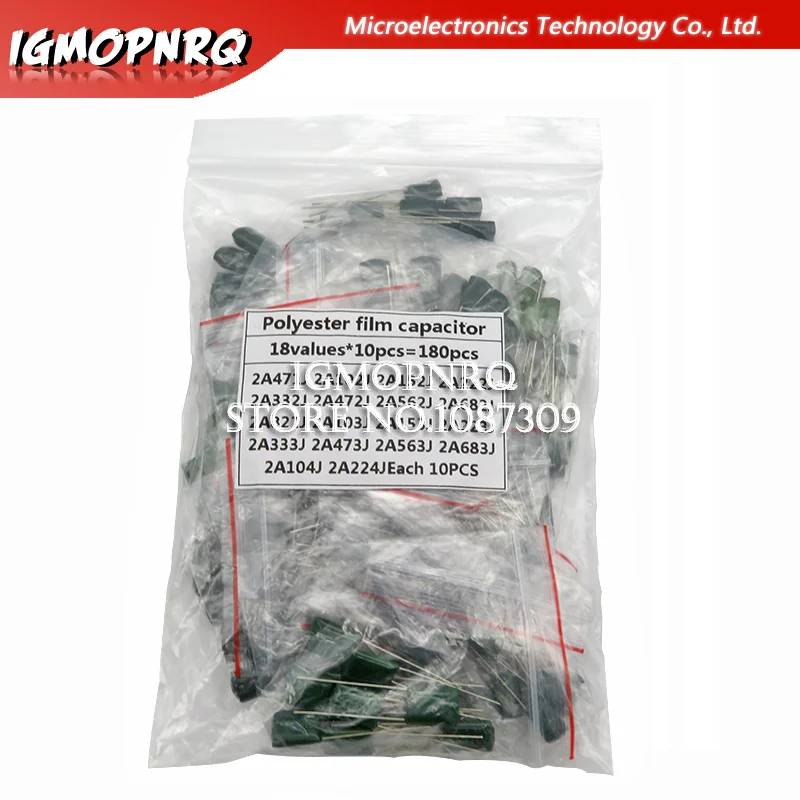 Полиэфирный пленочный конденсатор в ассортименте, содержит 2A104J 2A332J 2A472J 2A103J 2A333J 2A473J 2A563J 2A223J 180 шт. = 18 значений * 10 шт.