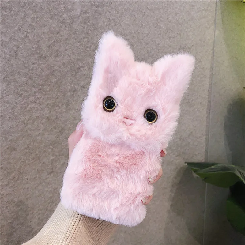 Зимний теплый плюшевый милый чехол для телефона с кошкой для IPhone...