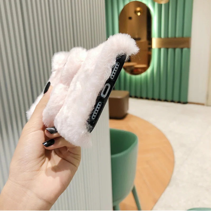 Зимний теплый плюшевый чехол для телефона iPhone XS Max XR X 12 11 ...