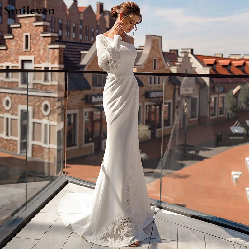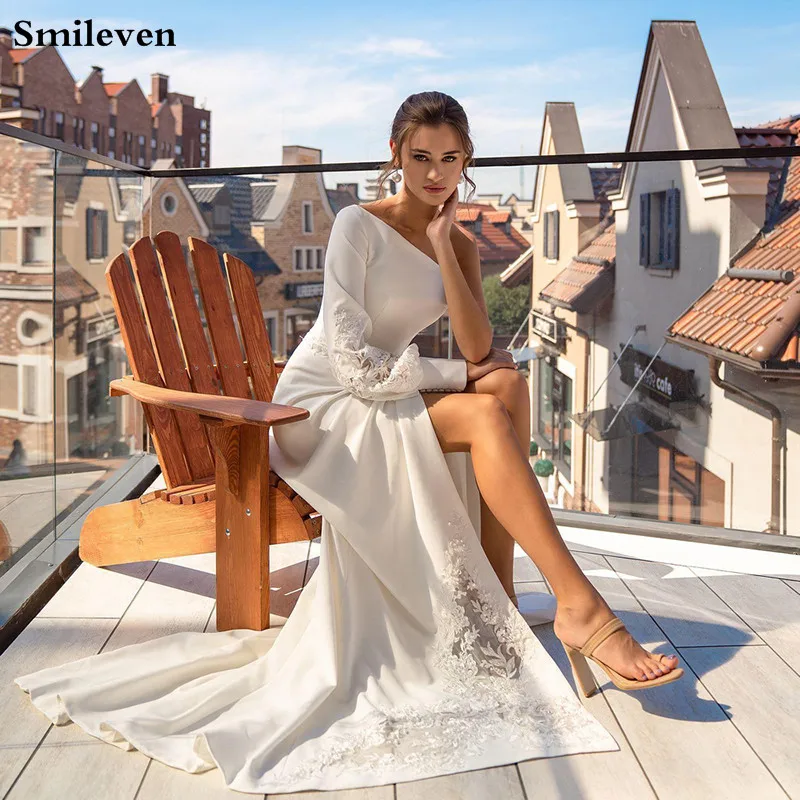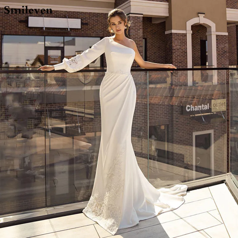Смайлик Русалка свадебное платье Мягкий атлас на одно плечо Свадебные платья Boho 2020 Vestido De Noiva кантри свадебные платья