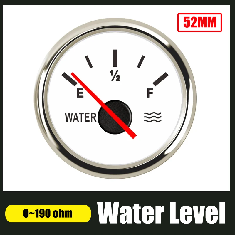 Датчик уровня воды для автомобиля, морского судна, лодки, 52 мм, ободок из нержавеющей стали, измеритель уровня воды в резервуаре, с красной подсветкой, 0 190 Ом