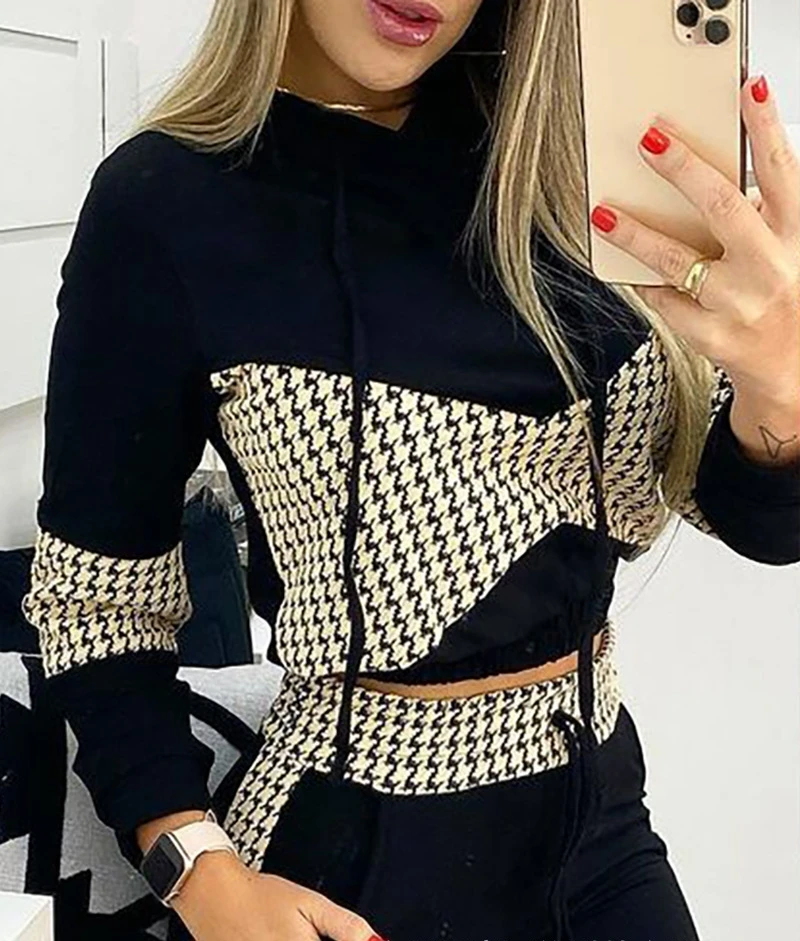 Женский спортивный костюм с цветочным принтом, короткий топ с длинным рукавом и леггинсы