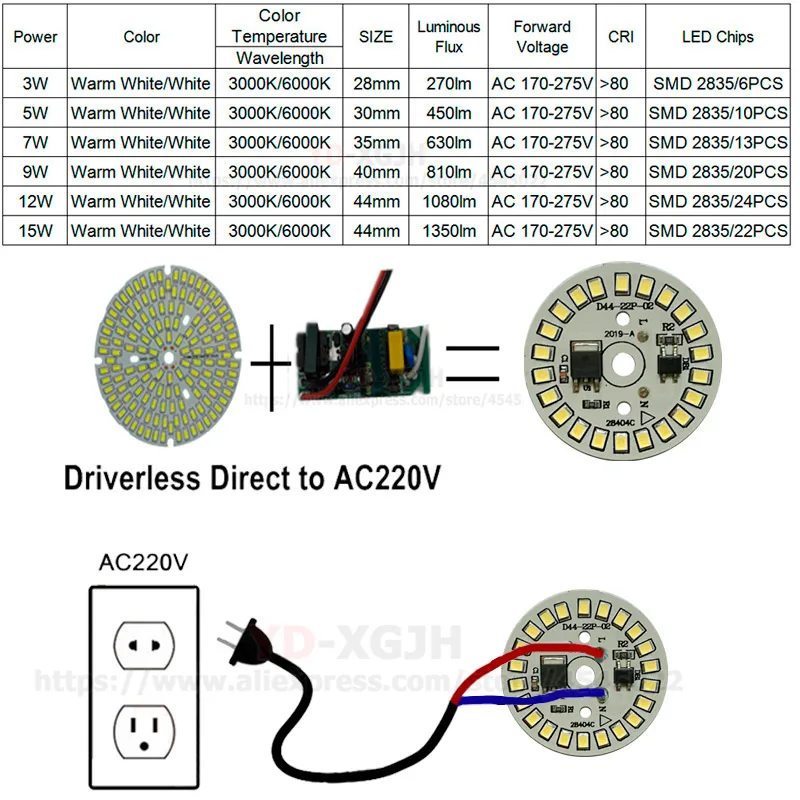 Светодиодная печатная плата со встроенным IC-драйвером, 220 В переменного тока, драйвер для светильник пы теплого белого света 35791215 Вт, не требует драйвера, алюминиевая плата