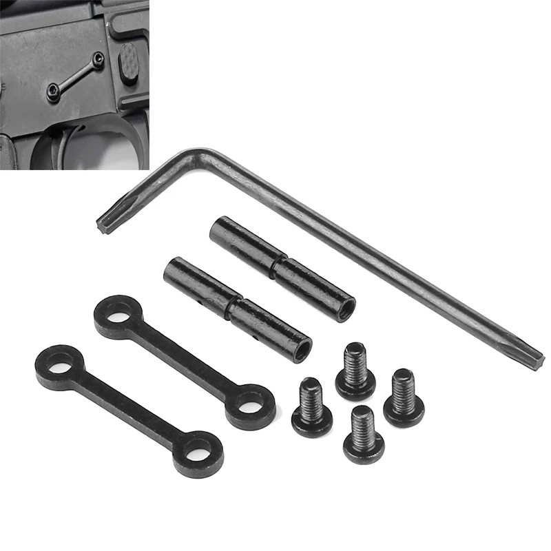 Это самые сильные булавки, которые могут быть изготовлены и были разработаны, чтобы выдерживать высокие ударыСпециальные Анти-ползучие фиксаторы предотвращают износ вашего оружияКлючи и винты в комплекте2 боковые пластины (черные) удерживают триггер вместе с этими уникальными фиксаторами. Этот комплект гарантирует, что булавки всегдаДаже в самых сложных условиях.Подходит для обычного. Диаметр отверстия 154. Включает все монтажное оборудование.Штифты отделаны черным оксидом. Обязательное обновление для любого пользователя.Они устраняют любые бесплатные игры с помощью спичечных триггеров. Они также защитят ваши винтовки специальными антиползучими фиксаторами, которые предотвращают износ на приемнике.Инструмент для установки штифта и гаечные ключи в комплекте.Примечание: Внешняя ширина некоторых приемников может отличаться в области штифта в зависимости от производителя. Слишком длинный штырь не повлияет на функцию или производительность. Пожалуйста, не скручивайте винты, что может привести к повреждению боковин.