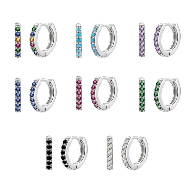 Женские маленькие серьги-кольца из стерлингового серебра 925 пробы с радужной застежкой из циркония, с бирюзовымлавандовымчернымзеленымбелымголубым цветом, 7 мм