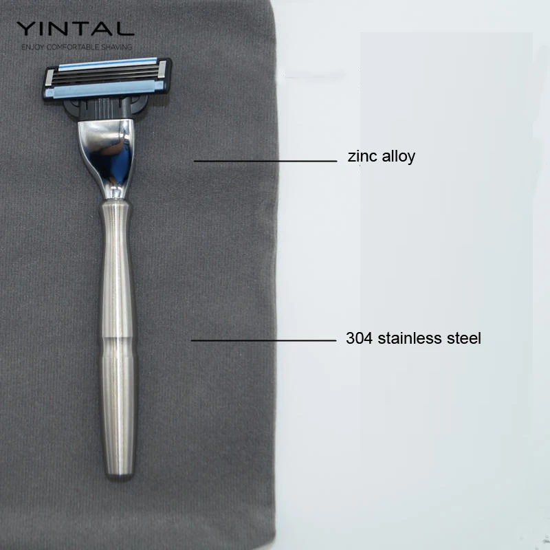 YINTAL 304 безопасная бритвенная ручка из нержавеющей стали, Мужская Бритвенная кассета, бритва из чистого металла, сменная бритва