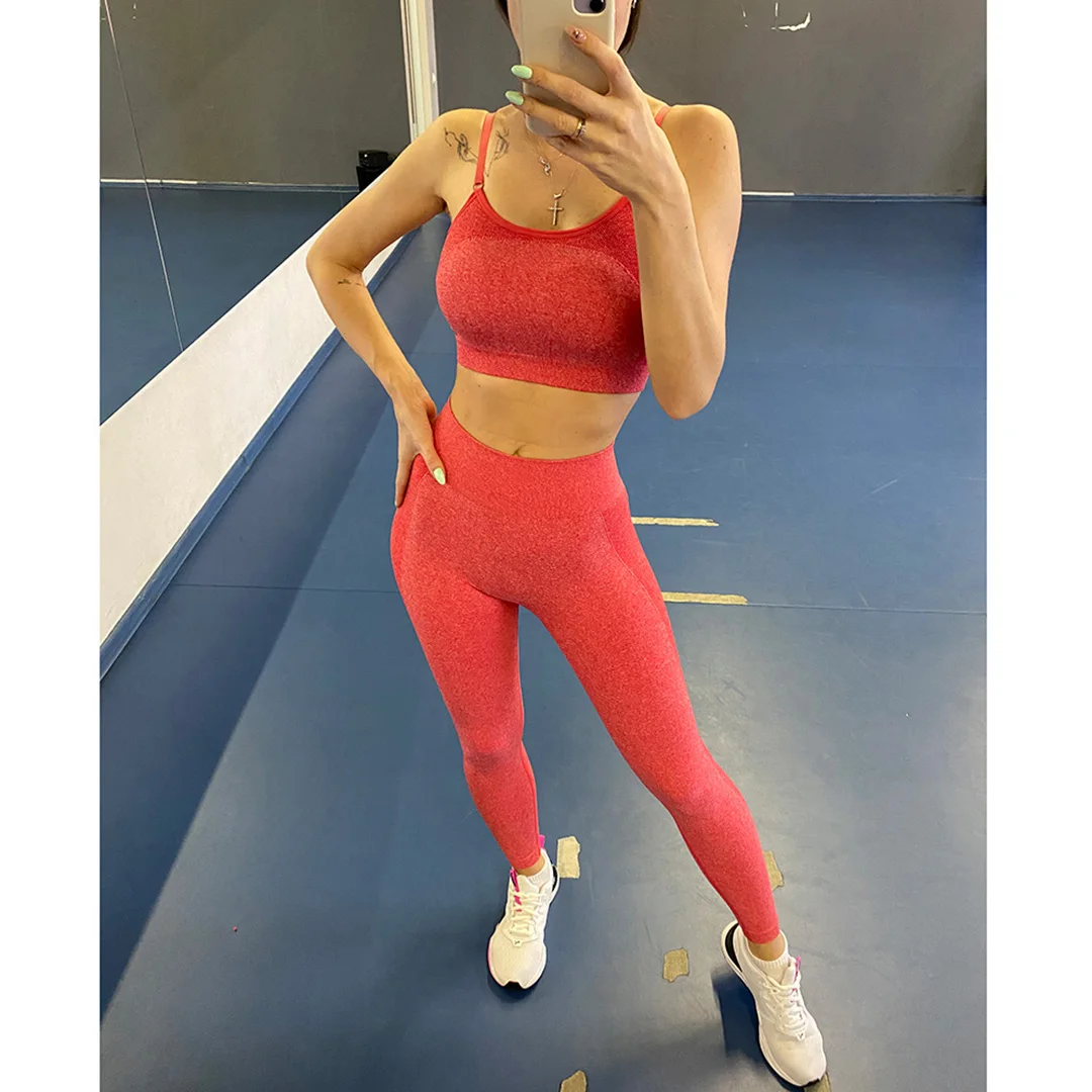 Комплект для йоги бесшовное для тренировки, женская спортивная одеж...